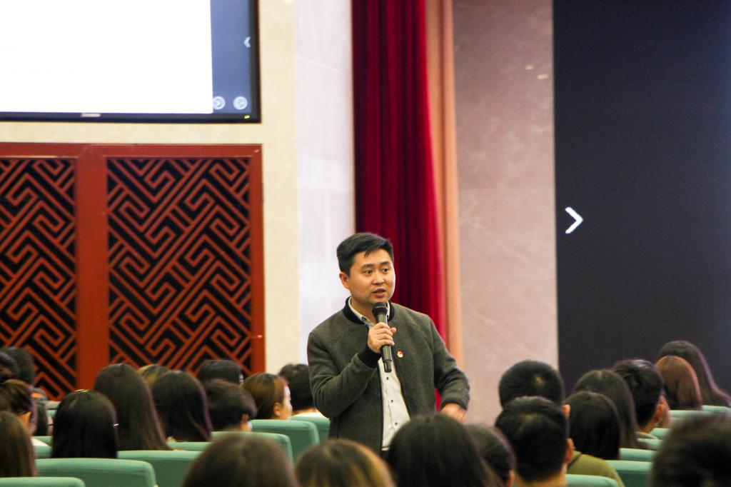 开班仪式结束,第一讲正式开始。李刚老师带领学员回顾了中国共青团的历程,他表示,作为中国共产党的助手和后备军,更应该在了解团史的基础上坚定自己的理想信念,做好各项学生工作。