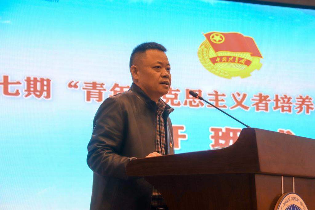 随后,党委副书记陈龙国发表讲话。他表示,“青马工程”团校培训班作为我校团干部培训的重要平台,对于团干部的作风建设和能力提升起到重要的作用,同时他希望全校团学干部要争做新时代有担当的团学干部,不辜负同学们的信任和托付,要珍惜难得的学习机会和锻炼的平台,做好表率,做胸怀理想、心系同学、品学兼优、作风扎实的新时代团学干部。