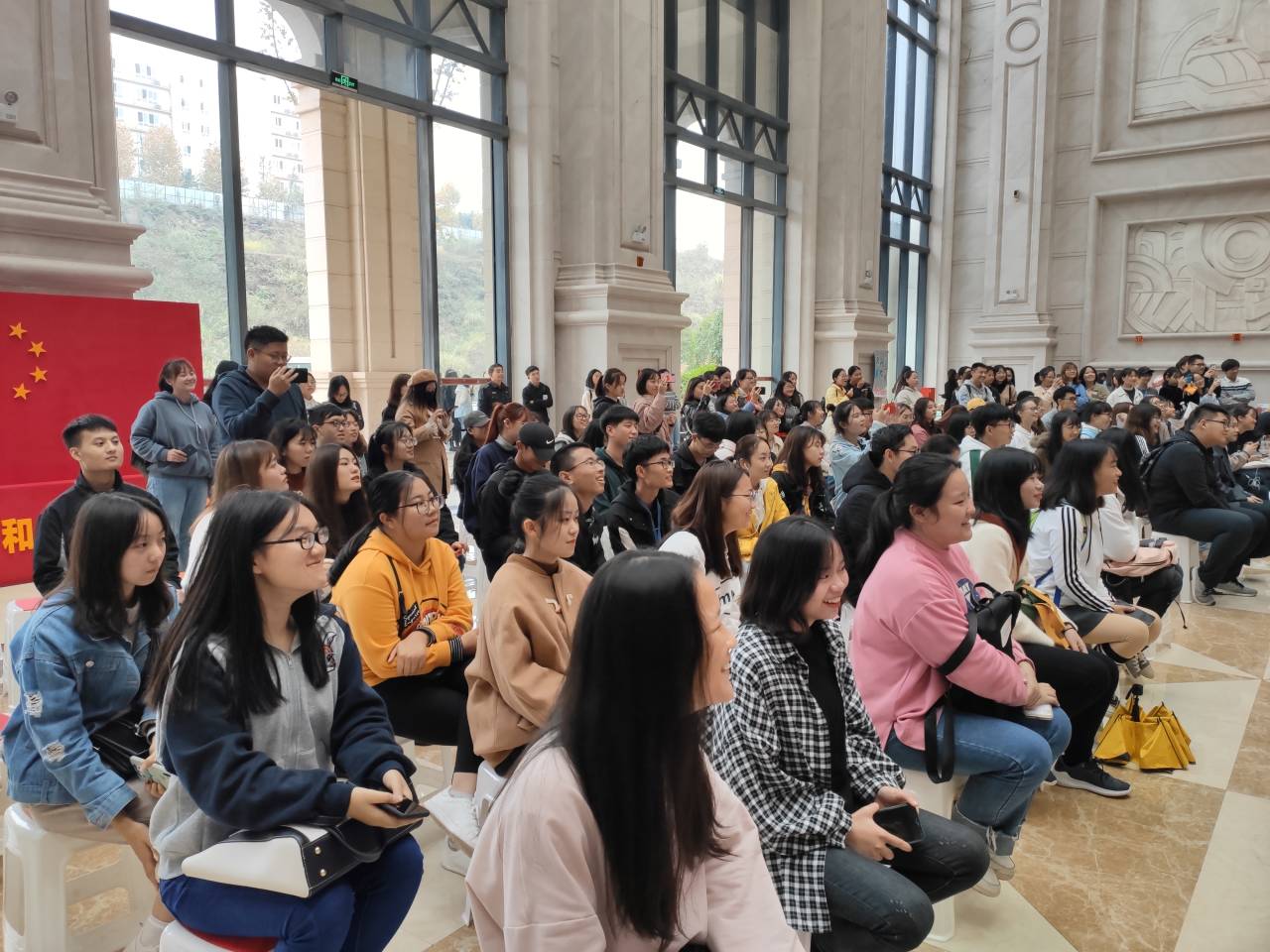 为充分发挥学生社团在校园文化建设和大学生素质拓展中的积极作用,1113-1114日,由校团委主办,社团联合会承办的第五届“红星闪耀百团争光”社团风采大赛开幕式暨初赛在教学楼大厅顺利举行。出席本次初赛的嘉宾有校团委书记兼学生处副处长李刚、金融学院团总支书记于成江、商务学院团总支书记徐繁生、财富管理学院团总支书记徐丽锦、讯飞人工智能学院团总支书记原芳、学生处办公室副主任贺明玲、学生处王竞楠、学生处张爽、校团委郑旺以及各校、院级主席团。此次大赛共分为表演类与非表演类两个赛场,来自艺术特长、体育竞技、志愿公益、社会实践、自律互助等5大类的28个社团参与比赛,近1000名同学积极参与。