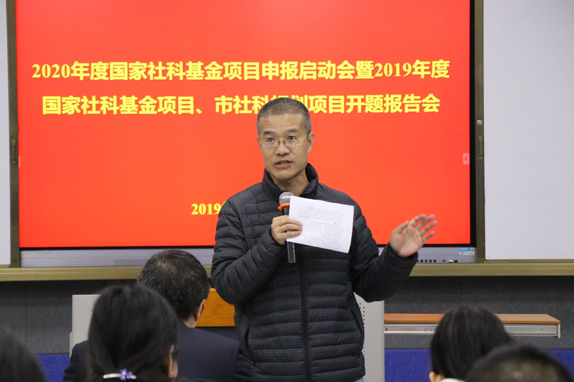 2019年11月14日,我校2020年度国家社科基金项目申报启动会暨2019年度国家社科基金项目、市社科规划项目开题报告会在教学楼1220智慧教室召开。出席第一阶段启动会的领导有重庆市社科联周顺文调研员、我校吴华安常务副校长、房朝君校长助理,参会人员包括各二级教学单位负责人、项目负责人与项目组成员、具有博士学位或副高级及以上职称的教学科研人员,会议由科研处张立副处长主持。