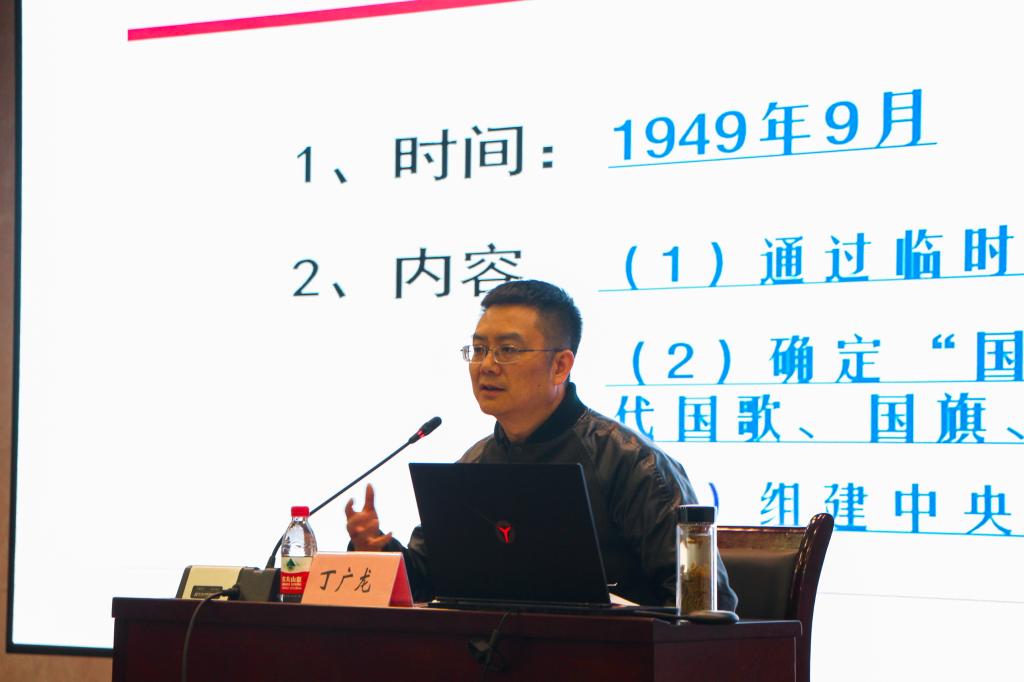 七十年披荆斩棘,七十年风雨兼程。丁书记引用习近平总书记“百年未有之大变局”的话切入培训的主题,他分别对近期国内及国际形势进行了具体分析,借此来回顾中国七十年的风雨历程。丁书记强调了人民政协筹建新中国、开国大典、全国的基本解放、土地改革等重要大事记。他表示,中华人民共和国在十年动乱、改革开放以及党的十八大以来取得了举世瞩目的成就。学员们在丁书记激动人心的讲述里深切感受到了中国人民在中国共产党的带领下不懈探索、勇往直前的可贵精神。