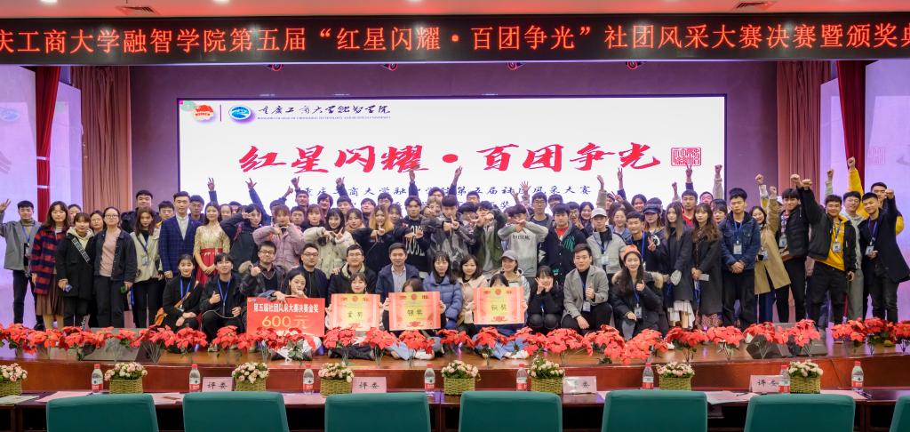 为充分发挥学生社团在校园文化建设和大学生素质拓展中的积极作用,20191128日中午12:30,由校团委主办,社团联合会承办的第五届“红星闪耀百团争光”社团风采大赛决赛暨颁奖典礼在学术报告厅顺利举行。应邀出席本次决赛暨颁奖典礼的评委有校团委书记兼学生处副处长李刚、校团委兼职副书记、经济学院团总支书记夏文瑞,管理工程学院团总支书记范雪林、物流工程学院团总支书记刘有沛、商务学院团总支书记徐繁生、校团委刘艳娇、校团委郑旺。10个晋级的社团在本次决赛中展开了激烈地比拼,校级学生组织主席团代表、各学院主席团代表、28个社团代表,近500名观众观看了本次大赛。