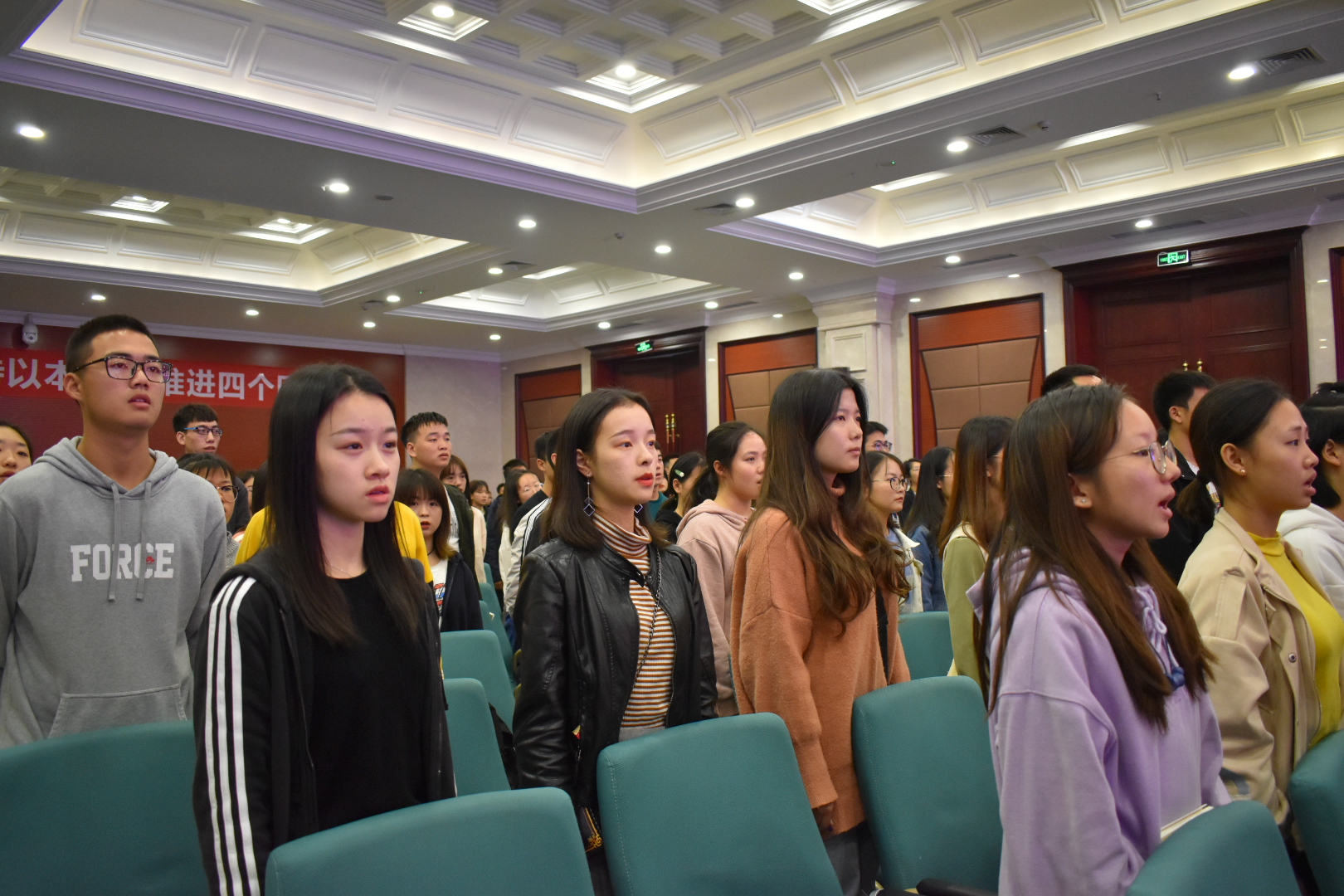 为了进一步提高入党积极分子对党的理解和认识,端正入党动机,坚定入党决心,使他们从思想和行动两个方面严格要求自己,争取早日加入党组织,2019年11月1日中午,我校“第26期党的知识培训班开班典礼”在学术报告厅隆重举行。校党委书记丁广龙、党委副书记陈龙国、党群工作部部长以及各学院党总支负责人出席了典礼,我校350余名入党积极分子参加了本次典礼,开班典礼由党群工作部部长倪倩茜主持。