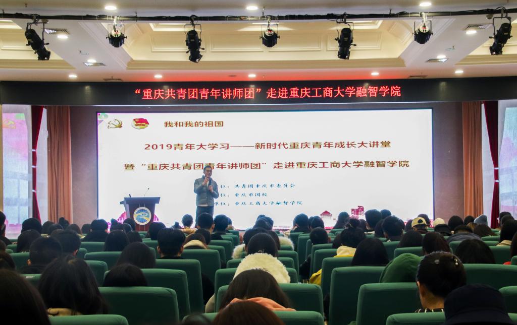 为深学笃用习近平新时代中国特色社会主义思想,号召广大青年为实现伟大复兴的中国梦而不懈奋斗,2019年12月4日下午2点半,由共青团重庆市委员会主办,重庆市团校承办,重庆工商大学融智学院团委协办的“奋斗的青春最美丽——2019‘青年大学习’新时代重庆青年成长大讲堂”在学术报告厅顺利举行。本次活动邀请了重庆市永川区何埂镇联盟村党总支书记罗南阳同志向学校团员青年分享他的人生经历与成长故事。学校团学干部、团员青年代表共计400余人参加了本次活动。