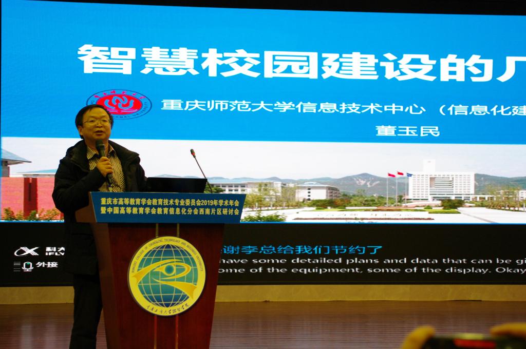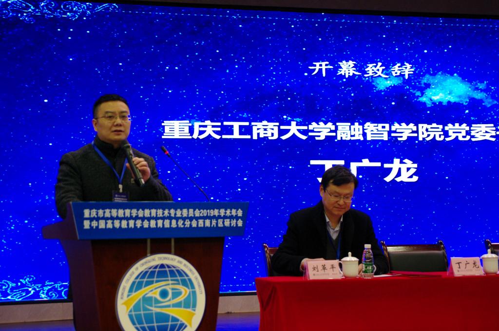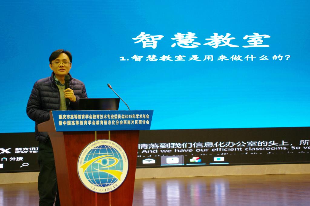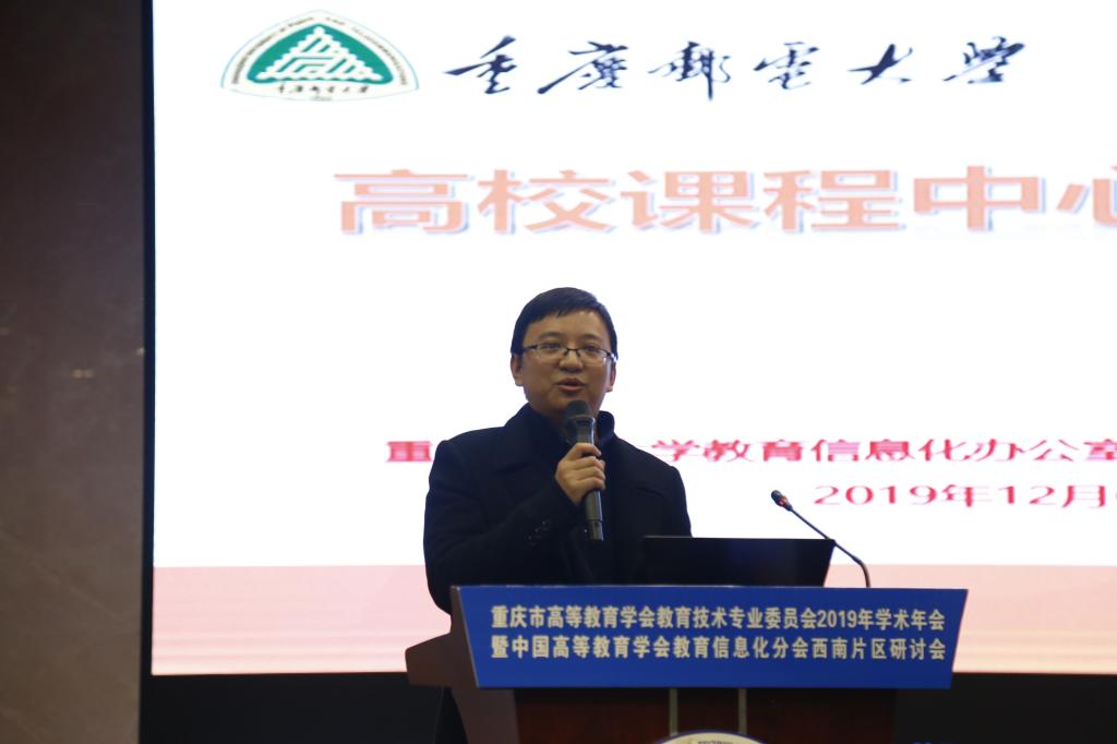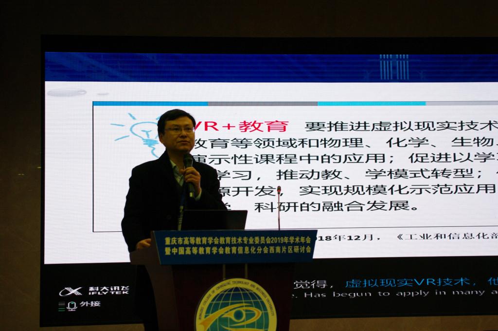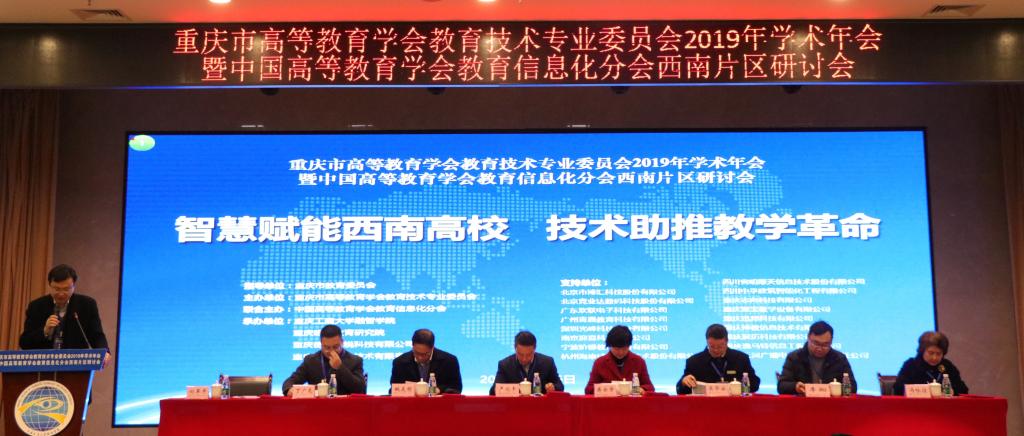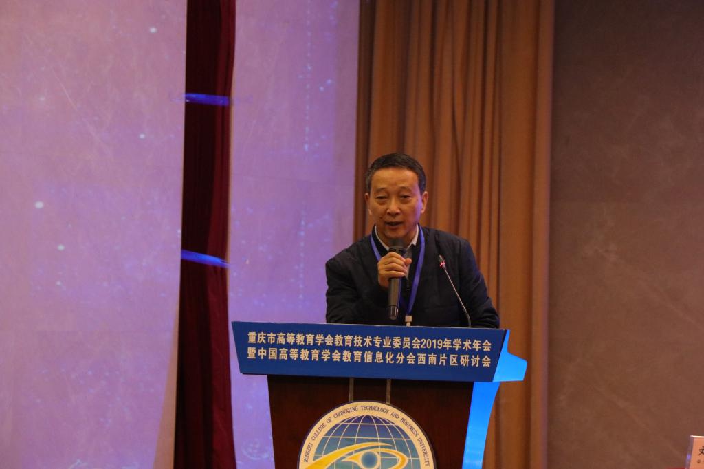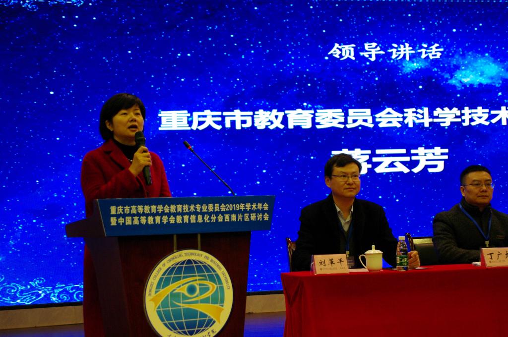 为加强高校间学术交流、信息沟通和工作协同,推动“智慧赋能西南高校,技术助推教学革命”,在重庆市教育委员会的指导下,重庆市高等教育学会教育技术专业委员会2019年学术年会暨中国高等教育学会教育信息化分会西南片区研讨会于2019年12月6日上午9:00在我校学术报告厅隆重召开。重庆市高等教育学会常务副会长严欣平教授、重庆市教育委员会科学技术处处长蒋云芳博士、重庆市教育信息技术与装备中心党总支书记兼重庆市高校在线课程资源中心负责人姚友明、重庆市教育委员会高等教育处干部李翔同志、重庆昭信教育研究院副院长冯咏谊出席大会,参加会议的还有西南各高校从事教育技术人员、获得第五届高校微课教学比赛一等奖和优秀组织奖获得者及各信息化企业代表。会议分两个阶段,分别由中国高等教育学会教育信息化分会副理事长、重庆市教育技专会理事长、西南大学刘革平教授,重庆工商大学教师发展中心方明建主任,四川外国语大学教育技术中心陈建国主任,重庆三峡学院信息化办公室主任赖于树教授主持。
