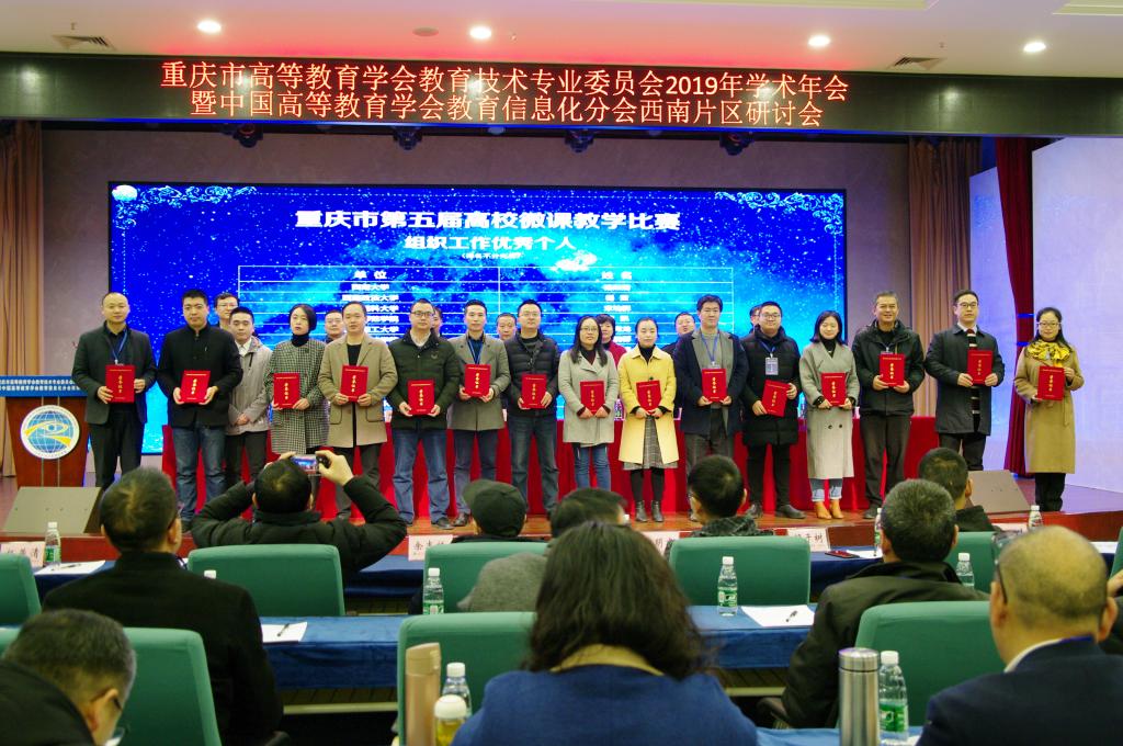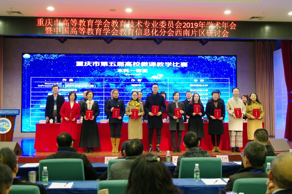 会上,与会领导还为重庆市第五届高校微课教学比赛一等奖及优秀组织奖获得者颁发了荣誉证书。本次比赛中,我校罗胤晨、胡文静老师的《灯塔的经济学奥秘—公共产品理论》、李星林、周映伶老师的《囚徒困境》获得本科组二等奖,张灿老师的《警惕信用证“陷阱”之付款软条款》获得本科组三等奖,另外我校教务处滕学英副处长获得组织工作优秀个人。我校在本届高校微课教学比赛中获奖再创新高。