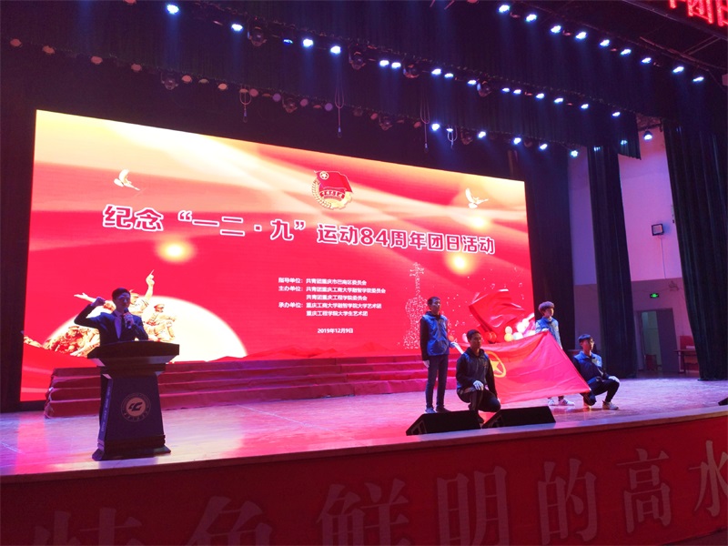 “一二•九”爱国学生运动84周年之际,为了纪念这一爱国学生运动,2019年12月9日,由团巴南区委指导、我校团委与重庆工程学院团委联合主办的纪念“一二•九”运动84周年主题团日活动在重庆工程学院南泉校区学术报告厅举行。团巴南区委书记腊丁扬、我校团委书记李刚、重庆工程学院团委书记黄涛与全场1300余名共青团员共同参与主题团日活动。