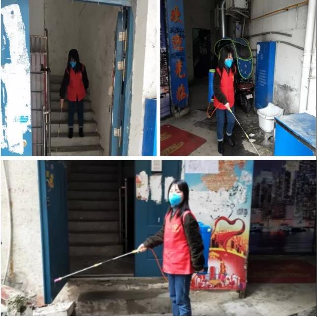 疫情来临的时候,蒲芋洁选择在社区担任志愿者,在社区内给街道楼道垃圾点喷洒消毒水,进行消毒工作。她说,特殊时期争取贡献自己的一点力量,来帮助家乡防控疫情。