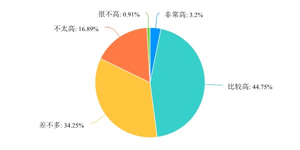 学生的学习积极性方面,同线下教学相比,34%左右的教师认为情况差不多,45%的教师则认为线上相对较高,还有3%的教师认为非常高。
