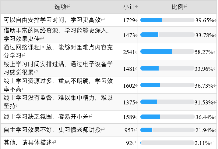 调查显示,超过98%的线上授课出勤率在90%以上,其中1/5的教师表示出勤率达到了100%。