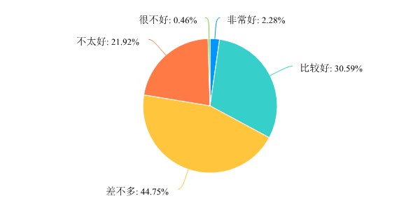学生的课前预习方面,和线下教学相比,45%左右的教师认为情况差不多,将近31%的教师认为要相对好一点,22%左右的教师认为相对差一点。