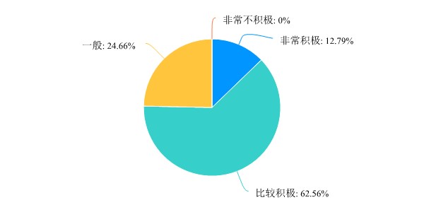 学生参与互动积极性方面,超过3/4的教师认为学生参与互动比较积极或非常积极,1/4的教师认为学生参与互动的积极性一般。