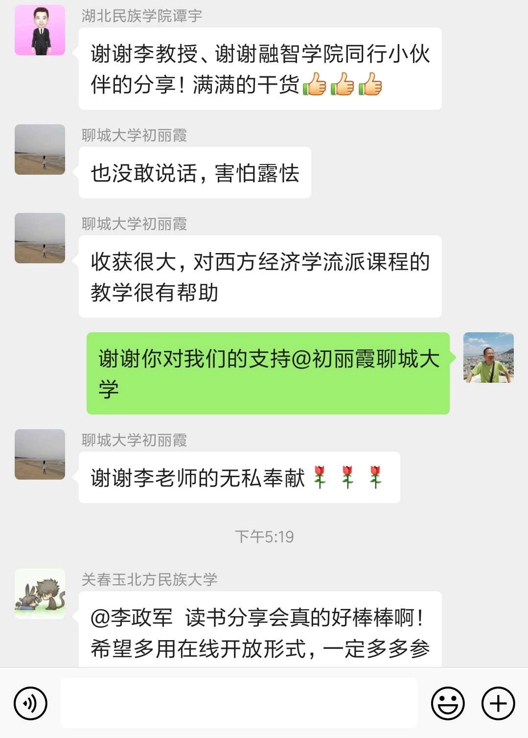 本次读书会增加了团队老师对奥地利经济学派的理解,深化了对于微观经济学、宏观经济学和政治经济学课程的认识,探索了网上举办教研活动的可能性,也为下周聆听浙江工商大学朱海就教授关于米塞斯经济学思想的讲座做好了准备。