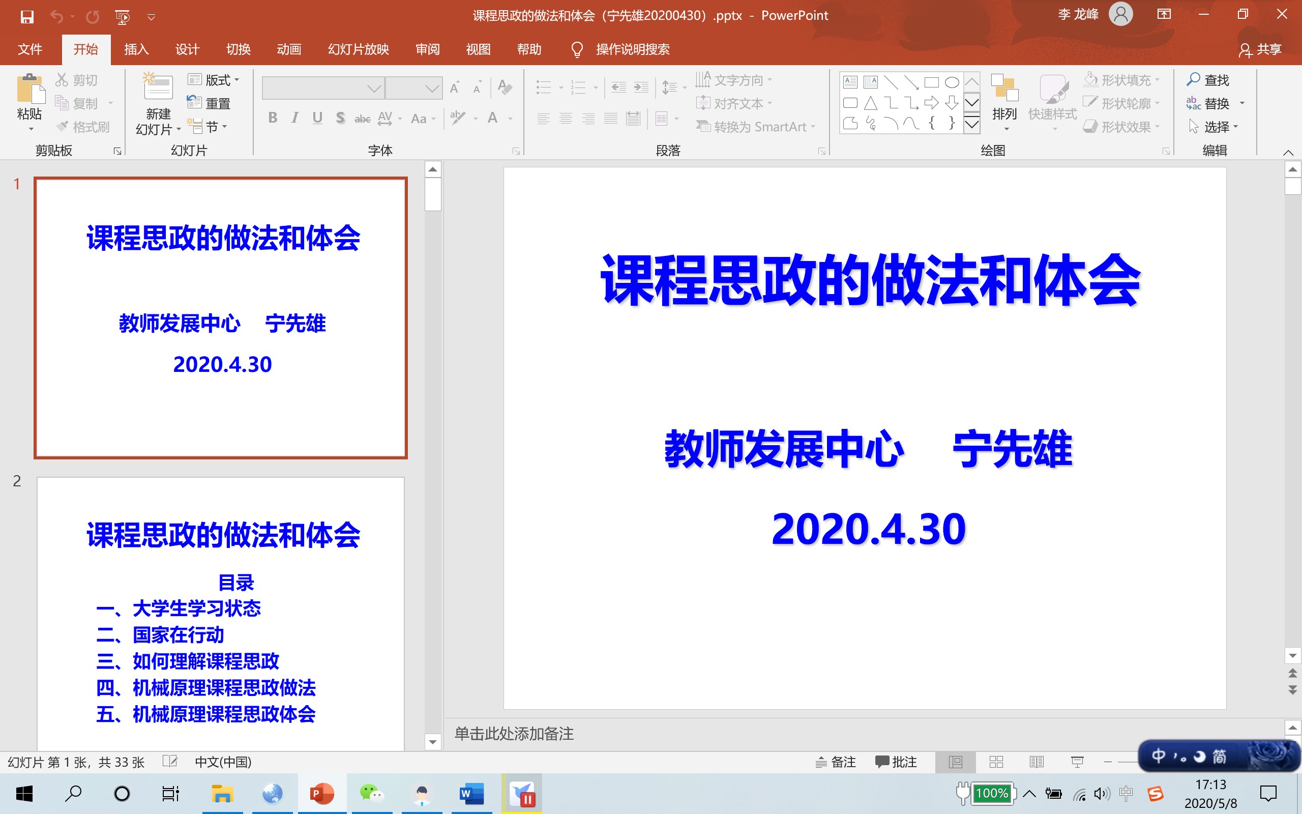 为贯彻党的教育方针,落实立德树人的根本任务,推动我校课程思政工作的有序开展,2020430日下午14:00,教务处教师发展中心宁先雄主任作了以课程思政的做法和体会为主题的课程思政专题讲座。讲座采用钉钉线上视频会议的方式进行,由教务处副处长滕学英主持,各教学单位负责人、教研室主任及教师代表共50人全程参加。