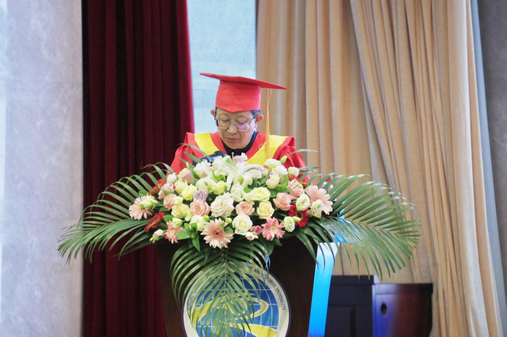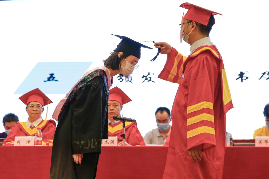 会上,党委书记张毅宣读关于表彰校级优秀毕业生及奖励考取研究生的相关文件,副校长沈民宣读给予毕业及授予学士学位证的相关文件,常务副校长吴华安教授为毕业生授位并行拨穗礼,毕业生就此完成了四年大学最后的加冕仪式。
