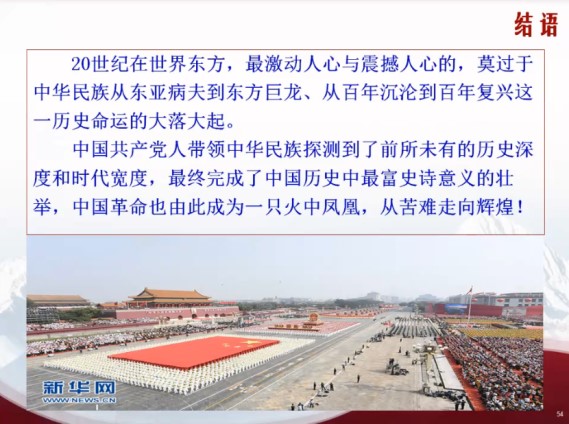 课堂上每一个深刻的时间点,每一张历史画面的老照片都让学员们心潮澎湃,因为他们深知这块红色土地的每一寸,都是老一辈革命家留下的足迹。从来没有什么岁月静好,只是有人替我们负重前行。本次授课,使学员们了解到20世纪在世界东方,最激动人心与震撼人心的,莫过于中华民族从东亚病夫到东方巨龙,从百年沉沦到百年复兴这一历史命运的大起大落。中国共产党人带领中华民族探测到了前所未有的历史深度和时代宽度,最终完成了中国历史中最富史诗意义的壮举,中国革命也由此成为一只火中凤凰,从苦难走向辉煌!
