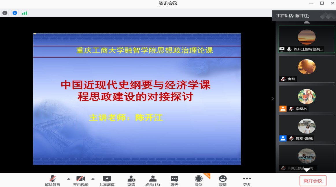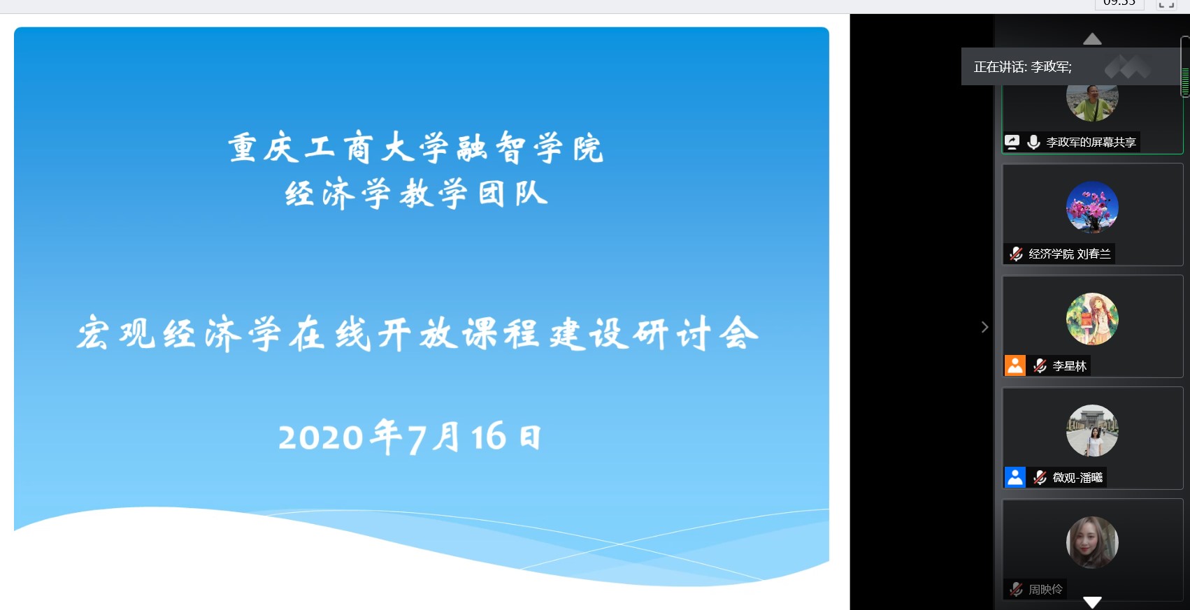 本次研修活动主要完成了四个主要任务:第一,邀请校思政部的六位老师,给团队成员系统介绍高校思政课的总体结构和具体内容,启动团队的课程思政建设项目。第二,邀请南京财经大学王庚教授为团队成员乃至全校老师讲授了微课制作的原理和实务,确定参加学校和重庆市第六届微课大赛的小组成员,讨论各个小组的微课选题、具体内容和课程思政的元素,启动校、市微课大赛的制作和打磨工作。第三,讨论经济学原理课程辅导手册编写中遇到的问题、写作的体例、遵守的原则。第四,根据马工程教材和我校学生的实际情况,深入讨论宏观经济学课程的教学大纲,教学重点和难点;在此基础上讨论宏观经济学在线开放课程知识点选择、项目组成员的分工和录制的各个时间结点,正式启动宏观经济学在线开放课程的建设。