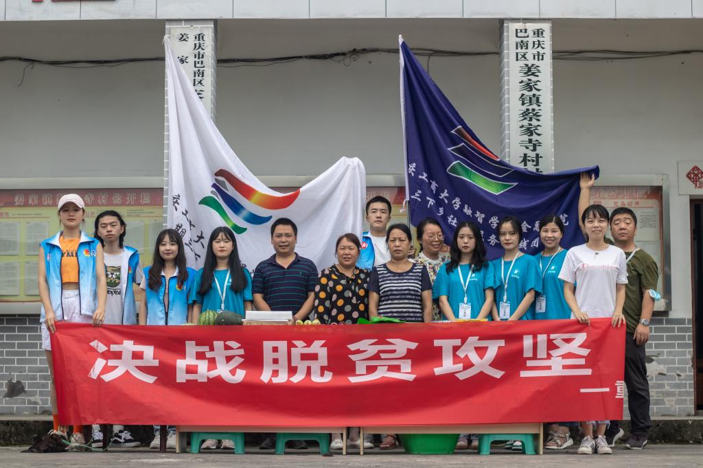 为助力贫困地区决胜脱贫攻坚,明确大学生的使命与担当,激发爱国爱乡爱家情怀,培养社会责任感,2020年7月20日,重庆工商大学融智学院经济学院和金融学院暑期“三下乡”社会实践团队来到市级贫困村之一的巴南区蔡家寺村,以直播带货、慰问建卡贫困户的方式,深入了解村民现状,为脱贫攻坚贡献青春力量。