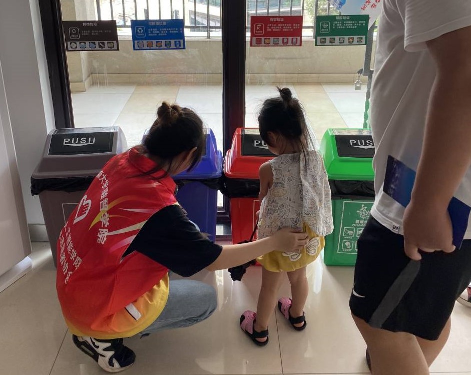 工作开展之前,社区工作人员通过详细的讲解为实践小分队的志愿者们介绍了工作内容,志愿者们先在社区中心为居民普及垃圾分类的相关知识,同时也向小朋友们强调了垃圾分类的重要性,增强社区居民的环保意识。