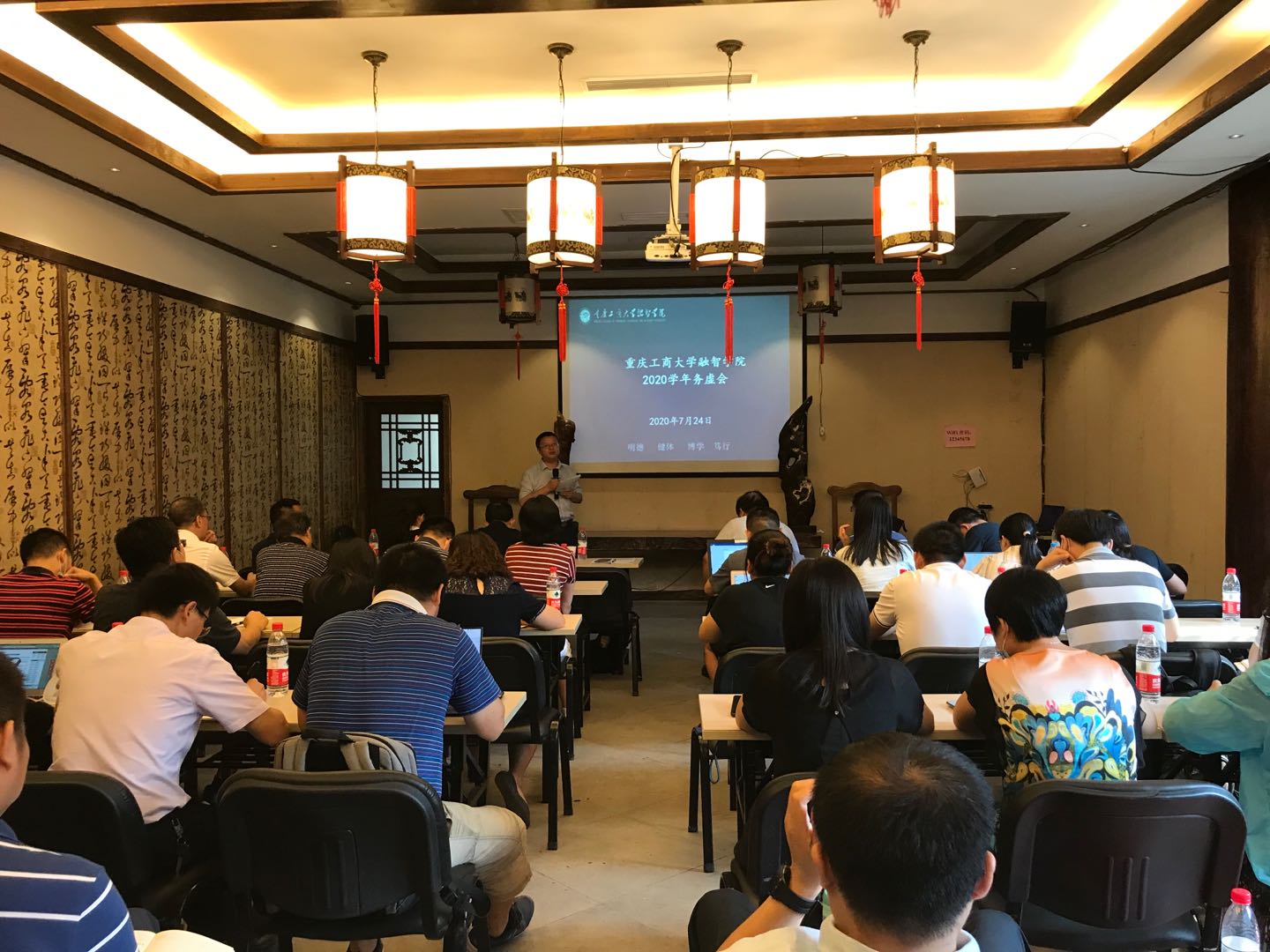 2020年7月24日,在重庆市巴南区丰盛古镇十全酒店召开了学校2019-2020学年务虚会,主要对学校“十四五”规划编制思路进行研讨。新鸥鹏集团专家委员会主任王崇举教授及其团队成员、校领导以及全体中干参加了会议。会议由党委副书记陈龙国主持。