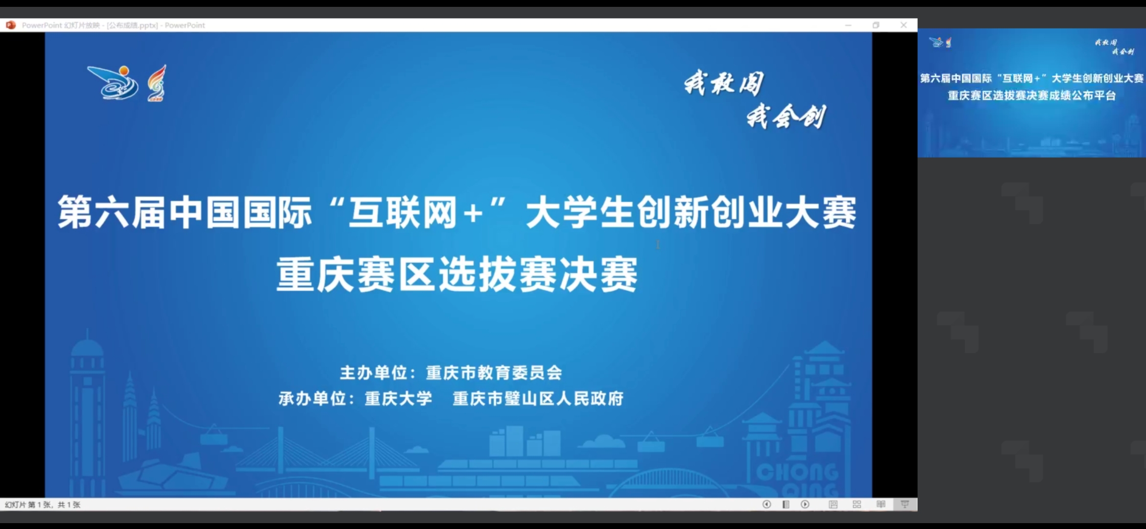 第六届中国国际“互联网+”大学生创新创业大赛重庆赛区选拔赛决赛于2020年8月25、26日正式开展。此次大赛由重庆市教育委员会主办,重庆大学、璧山区人民政府共同承办。本届大赛以“我敢闯,我会创”为主题,以“更国际、更教育、更全面、更创新、更中国”为中心,旨在以赛促学、以赛促教、以赛促创,进一步激发高校创新创业热情。我校师生团结一致,刻苦训练,经过一系列细致打磨,最终在决赛中斩获银奖四项、铜奖一项。