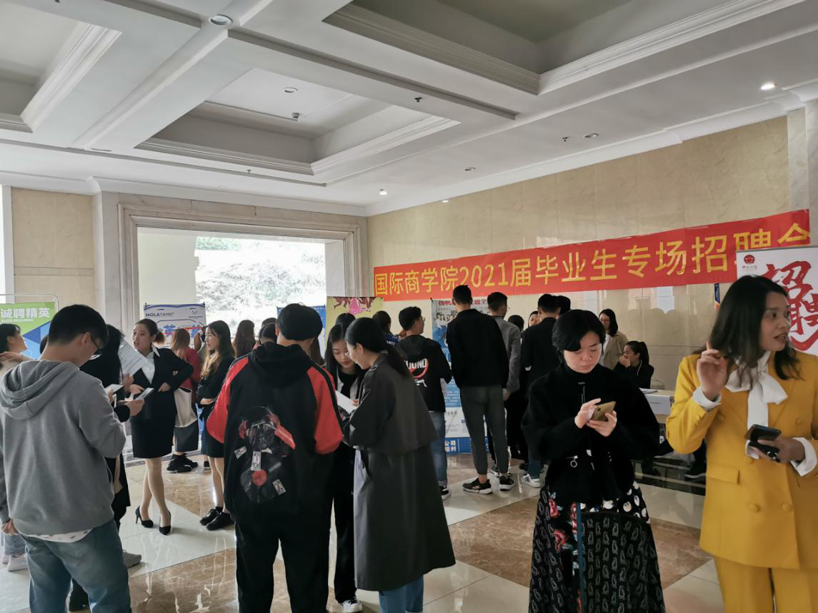 为提升学生技能,加深行业认识,更好地拓宽毕业生的就业渠道。2020年10月19日下午,国际商学院在教学楼3楼举办了2021届毕业生专场招聘会,此次招聘会是与重庆市中小企业跨境贸易公共服务平台合作,其旗下9家企业提供就业岗位200余个。