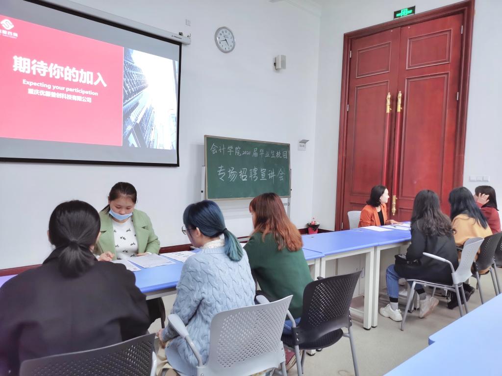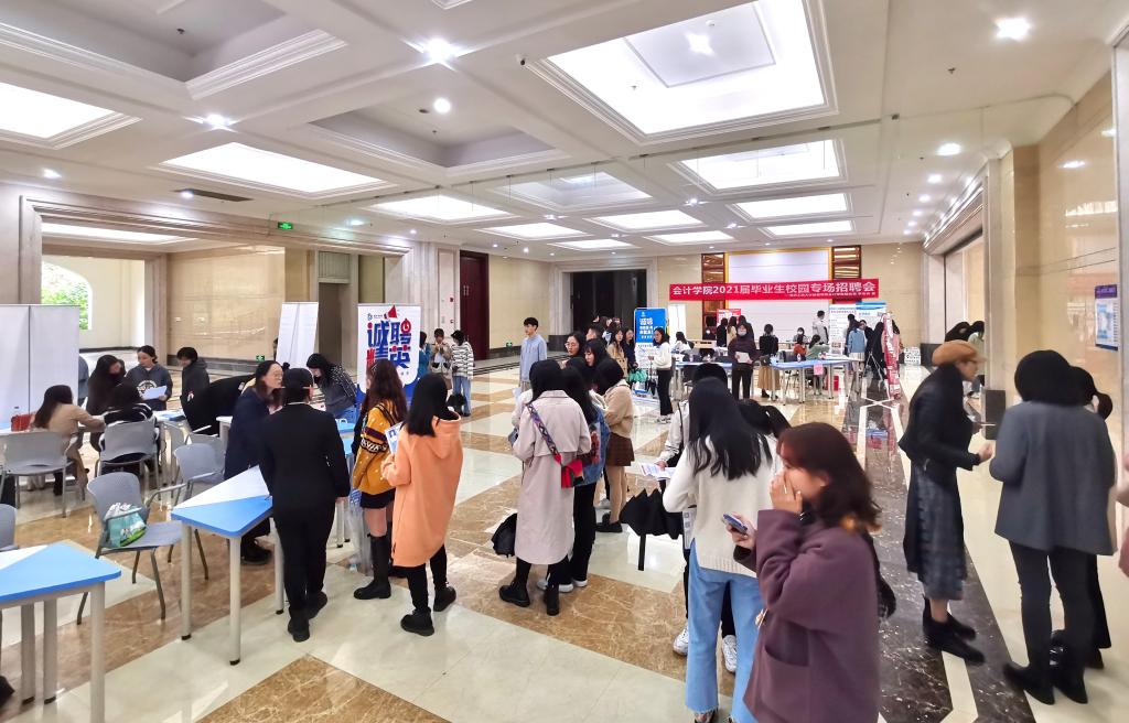 为了更好拓宽我院毕业生就业渠道,为毕业生提供更多就业机会,会计学院于2020年10月28日下午在教学楼二楼大厅举办了2021届毕业生校园就业专场招聘会。此次招聘会吸引了重庆市20余家会计协会相关单位参加,提供了审计助理、会计助理、商务专员等150余个岗位。