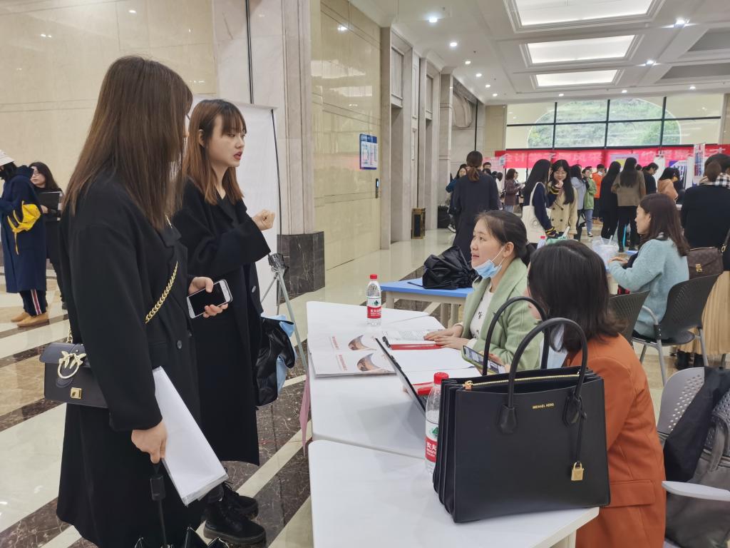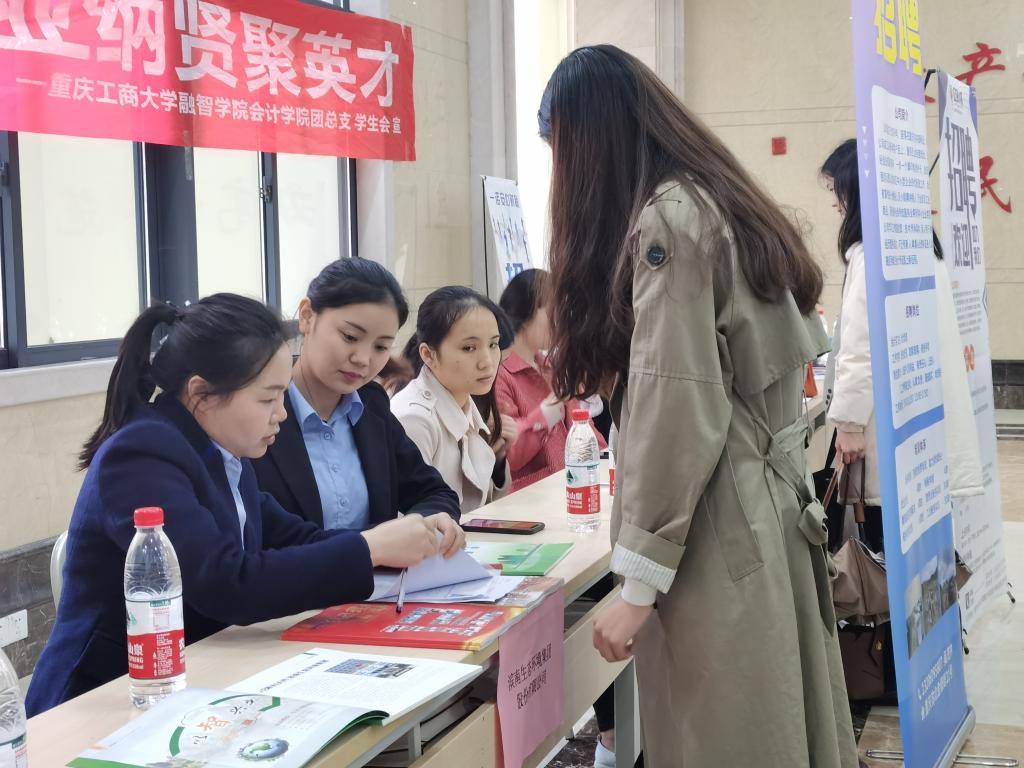 本次招聘会,同学们积极主动地前往用人企业咨询岗位情况并与各负责人进行了详细交谈,现场招聘氛围十分浓厚。之后招聘企业于1424、1208教室同时开展了企业宣讲会。滨南生态集团股份有限公司企业负责人于公司运营方向、企业文化、福利待遇等方面做出了细致讲解,并现场解答了同学们的疑问。重庆优服普创科技公司、重庆优服企业管理咨询有限公司即时为同学们搭建开放了资讯交流平台,不仅向同学们介绍了公司概况、人员需求以及选择该单位的理由等信息,并现场以工作能力、工作经验、学习态度三方面为考核标准进行了初步选拔。