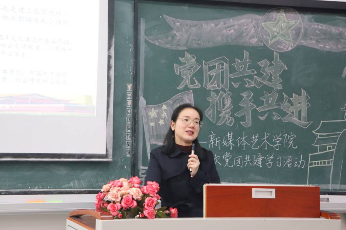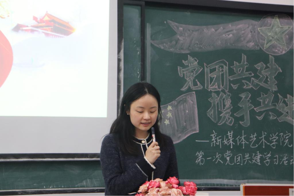 为进一步加强新时期党对共青团工作的领导,有效发挥党组织的政治领导力和团组织的模范示范作用,2020年11月3日,新媒体艺术学院以“党团共建,携手共进”为主题开展了本学期第一次党团共建学习活动。新媒体艺术学院党总支副书记甘雪梅老师、学院团总支书记朱明明老师、党政办冉光波老师、学院专职辅导员汤璐嘉老师以及学院全体学生党员、全体团学成员以及各班级团员代表参加了此次活动。