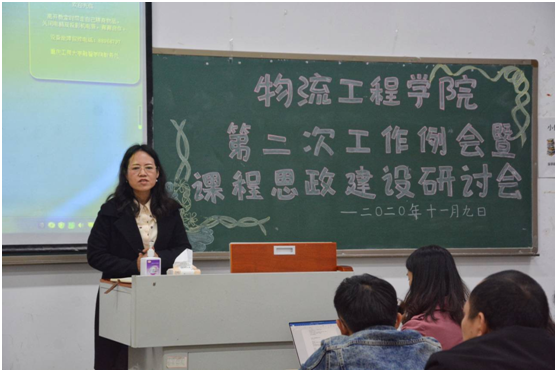 为深入学习贯彻习近平总书记关于教育的重要论述和全国教育大会精神,全面落实重庆市教委《关于全面推进高等学校课程思政建设工作方案的通知》精神,切实做好物流工程学院课程思政建设, 11月9日上午10点30分,物流工程学院在我校教学楼1502教室顺利召开2020-2021学年第一学期第二次工作例会暨课程思政建设研讨会。此次会议特别邀请到了学校马克思主义学院常晓薇院长、物流工程学院学术带头人张军教授给全院教师做指导。