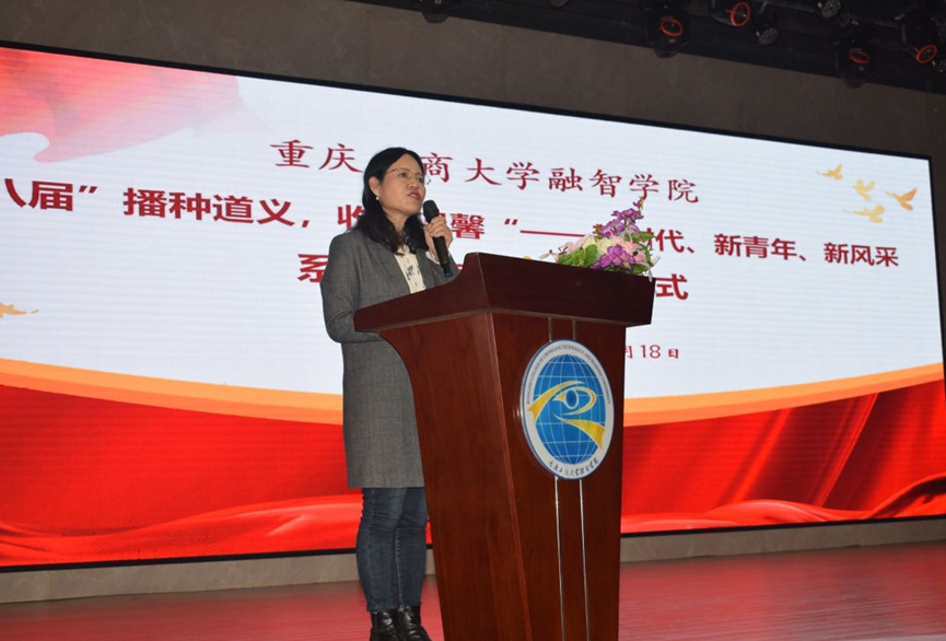 最后,马克思主义学院常晓薇院长给予了本次活动热情祝贺,值此“世界百年未有之大变局”之时,不仅我校即将迎来20周年校庆,取获得的发展机遇,“播种道义,收获温馨”德育活动也经历了八周年,逐渐长大成熟,八年来在老师和同学的精心维护下,使我校的思政育人工作取得显著成效,推出许多典范。常院长同时也表示,本次活动时代感强,主题鲜明,目标明确,并建议同学们在开展本次活动过程中:一要放眼世界、志存高远;二要政治站位高、把握准方向;三要立足现实、服务社会;四要在实践过程中,调查研究、全面发展;希望大家积极主动感知时代、融入时代、与时代共同发展。