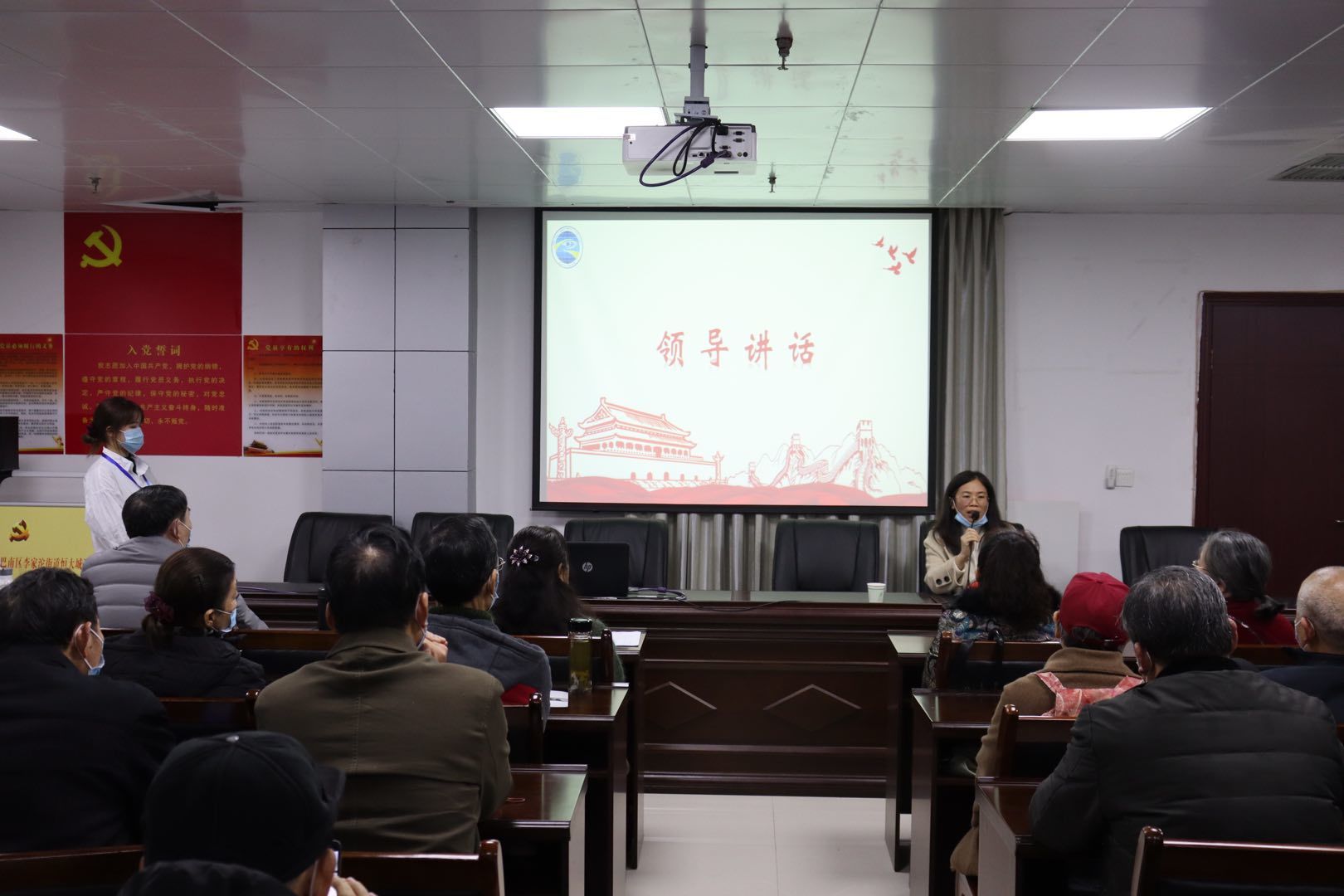 活动尾声,宋钰静书记对整场活动进行了总结,并向与会的党员同志及恒大城社区居民委员会表示感谢,指出了开展实践活动的规划、目地、意义;同时,她向学生代表强调:“进社区的实践活动要不虚此行,青年党员尤其要积极向前辈学习,净化入党动机,自觉增强党性,提升自己综合能力,成长为我党的中坚力量。”最后,刘余副书记向我校师生表示感谢,不仅给基地带来形式多样的党日活动,而且把高校讲党课真正落实到基地,并邀请我校师生与社区党员重温了入党誓词。