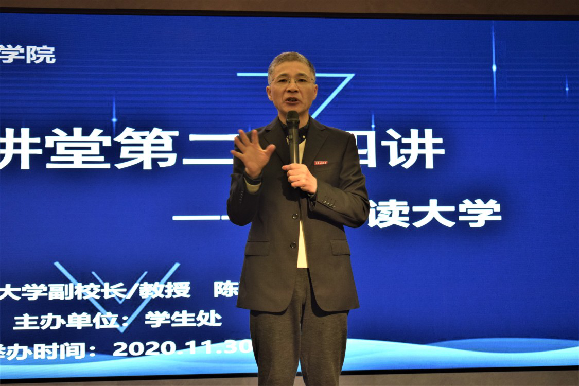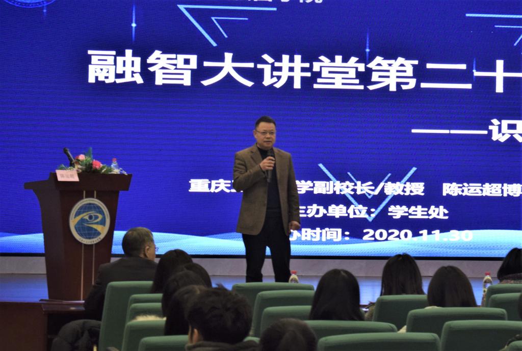 2020年11月30日19:00,由学生处主办的“融智大讲堂”第二十四讲——“识、读大学”专题讲座在学术报告厅顺利举行。本次讲座由重庆工商大学副校长陈运超教授主讲,校党委副书记陈龙国主持,全校200余名师生参加了本次讲座。