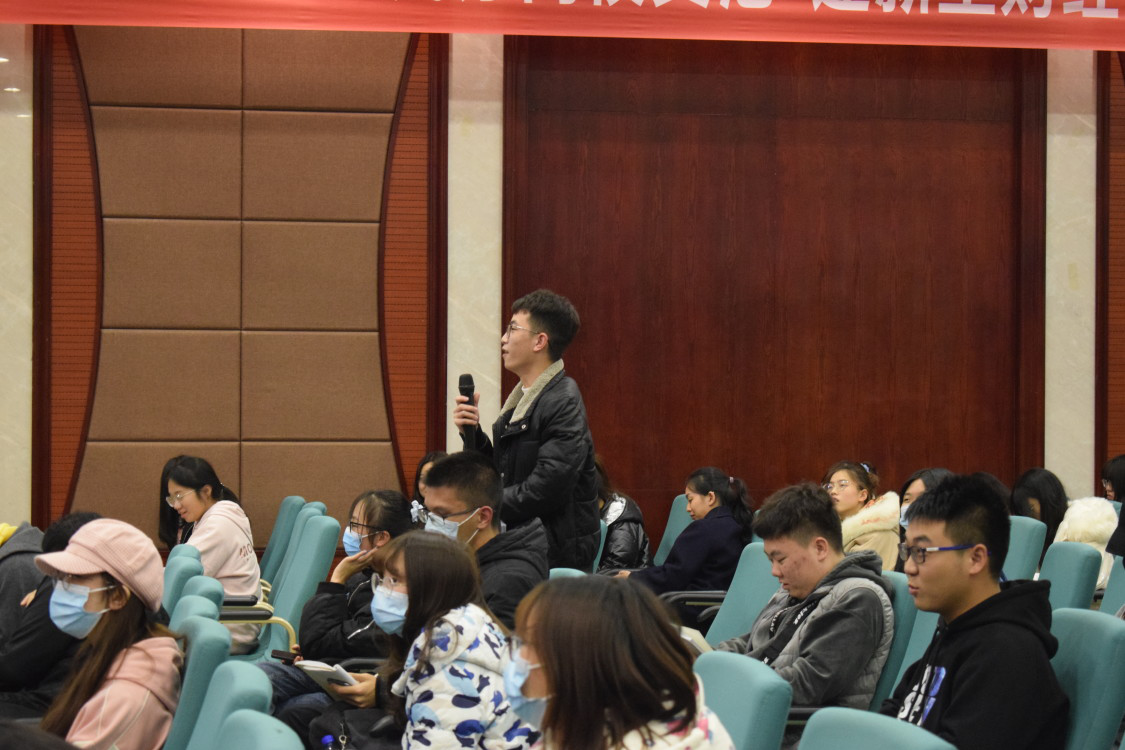 在提问互动环节,陈运超教授对同学们提出的问题进行了耐心细致的解答并建议大一学生从以下四个方面充实丰富自己的大学生活:一是着眼现实,从小事做起;二是学会思考,培养发现问题、解决问题的能力;三是学会利用现代的信息技术突破现有的资源困境,实现全面发展;四是提倡大家在自信的前提下突破固有的思维,实现跨越式的成长。
