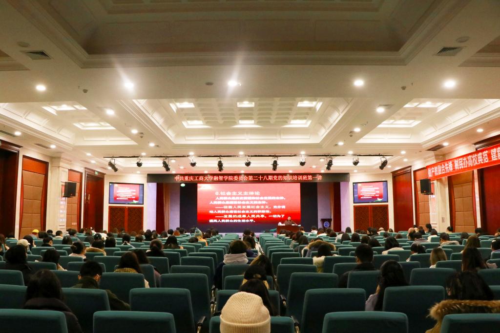 12月18日,学校第二十八期党的知识培训班,在学术报告厅顺利开讲。原重庆工商大学党委书记周希贤教授、重庆工商大学统战部常务副部长陈松教授、重庆建筑科技职业学院副校长李果,分别担任第一讲、第二讲、第三讲主讲人。本次党课由党群工作部部长李刚主持。