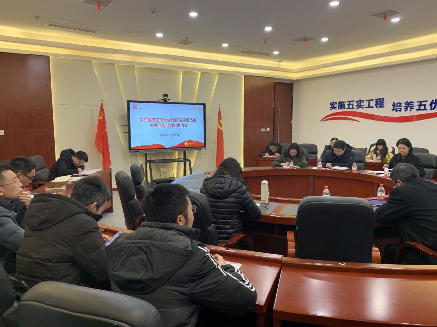 12月25日上午,机关党支部2020年12月组织生活会暨教职工政治理论学习会在行政楼2302会议室举行,机关党支部全体党员和教职工参加了会议。会议由机关党支部书记、党政办公室主任宋湘琴同志主持。