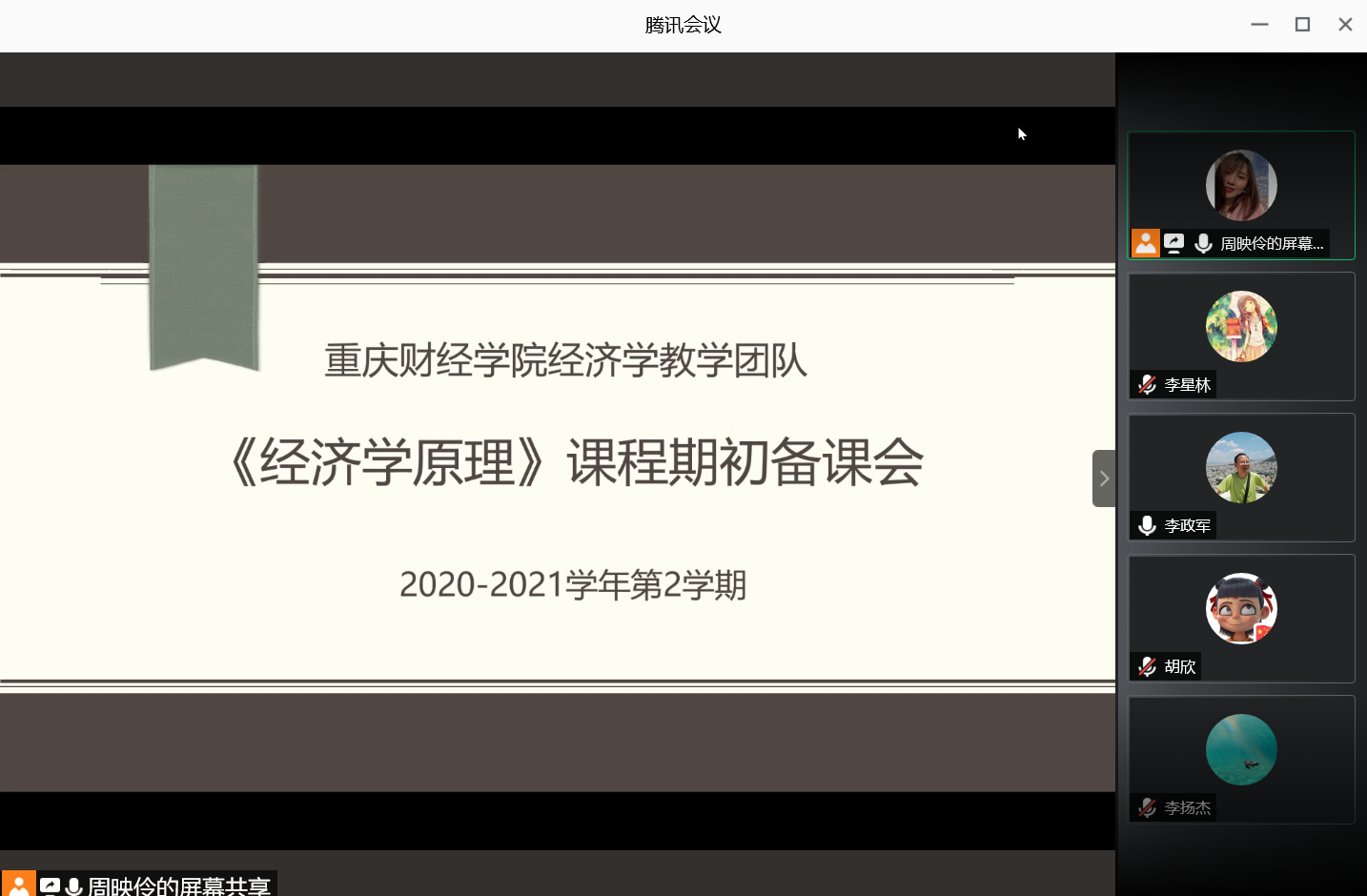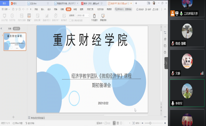 为切实提升团队教师教学能力,规范课程教学,助力教师讲好每一堂课。我校经济学教学团队在2021年2月22日至2月23日,通过腾讯会议分别召开了关于《微观经济学》、《经济学原理》和《宏观经济学》三门课程的期初备课会。此时备课会的具体内容有: