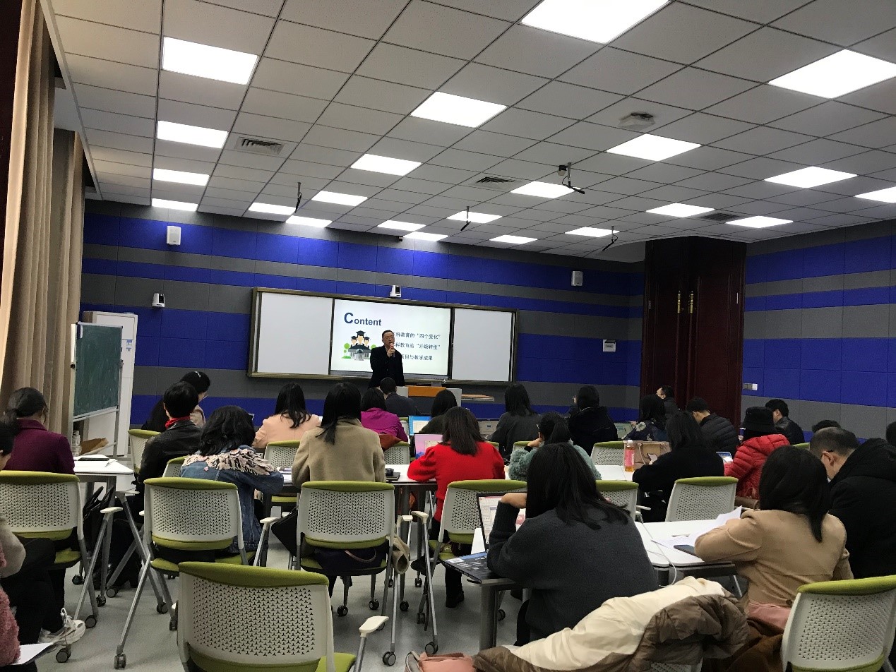 会上,杨教授首先解读了本科教育的四个变化:“国家教育要求之变——立德树人”、“行业产业需求之变——高精尖缺导向”、“家长学生期望之变——从有没有到好不好”、“教育改革形势之变——质量革命”,指出当前本科教育的不足之处与发展趋势,强调了高校教师参与学术研究与教学改革的必要性。紧接着,杨教授为大家梳理了新时代教育在知识、能力、素质等多方面的新要求,并带领大家对教学改革的三大理念及两大体系进行了深度了解,让大家对教改有了更深的理论认知。最后,杨教授结合自身实践向大家展示了做教改项目的逻辑过程,并结合几个具体案例从选题、申报、结题各环节进行了详细的解析和经验传授。