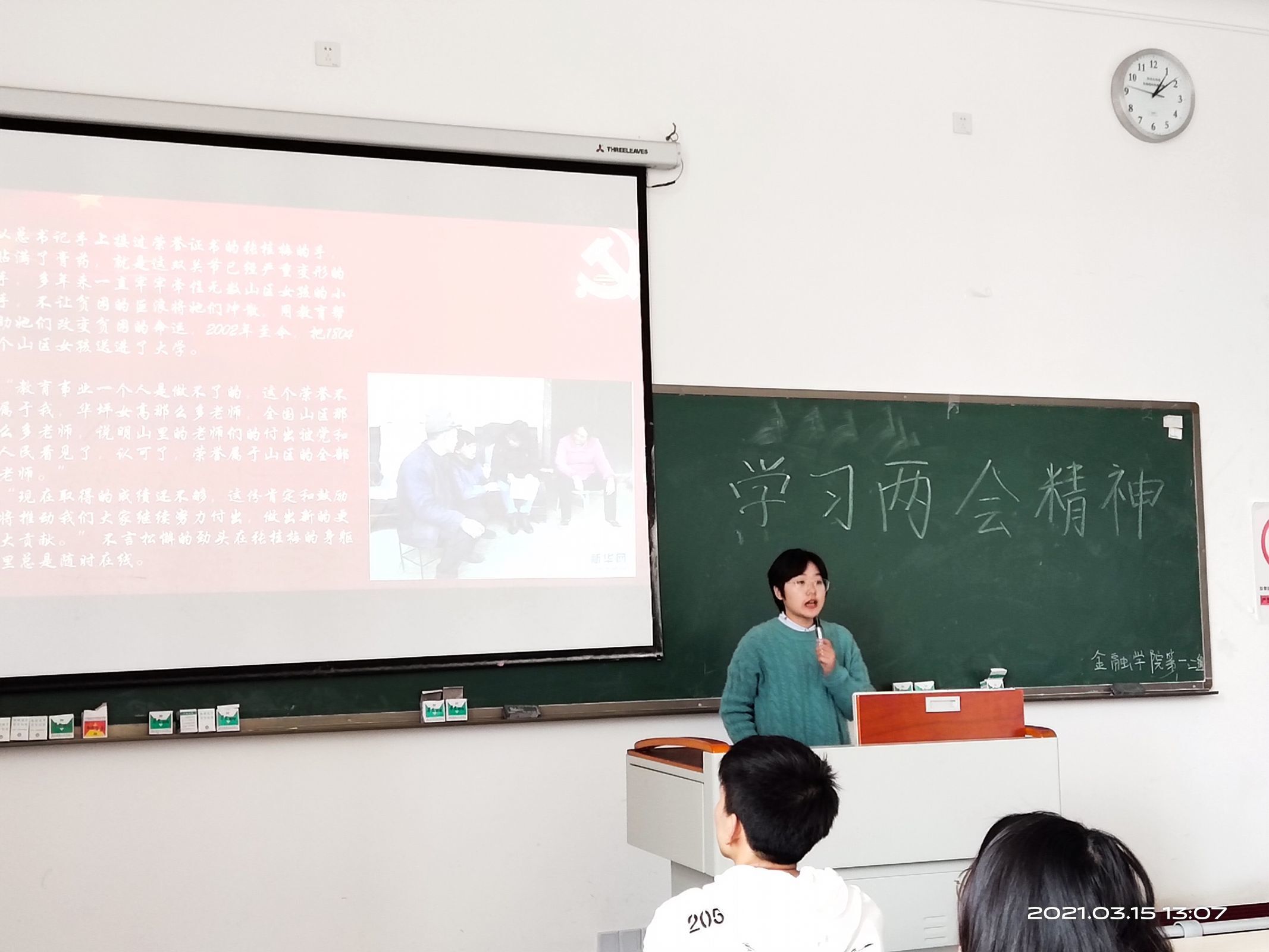 3月15日中午,为迎接中国共产党成立100周年,深入贯彻学习全国两会精神,扎实推进党史学习教育,进一步增强学生党员和入党积极分子的党性意识,金融学院学生党支部举办了“学习两会增信心 坚守初心担使命”微党课活动。