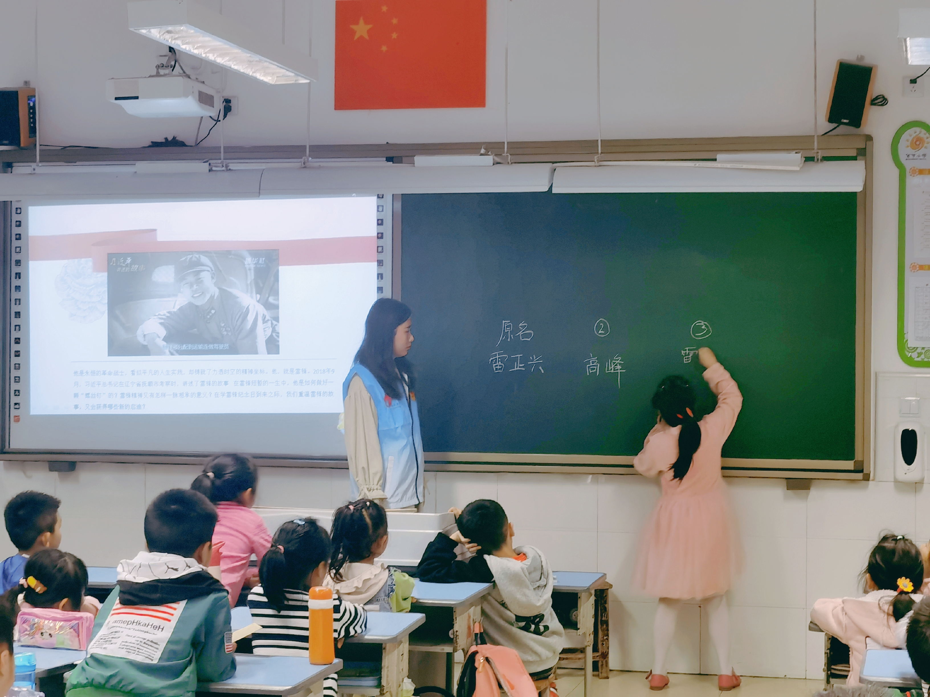 首先,学生志愿者们首先来到了百节小学给学校十二个班级的小朋友们分享雷锋事迹,讲述当代“雷锋精神”的故事。随后,师生志愿者们与百节小学的小朋友们一同前往百节敬老院开展大手牵小手“五个一 ”志愿服务活动。