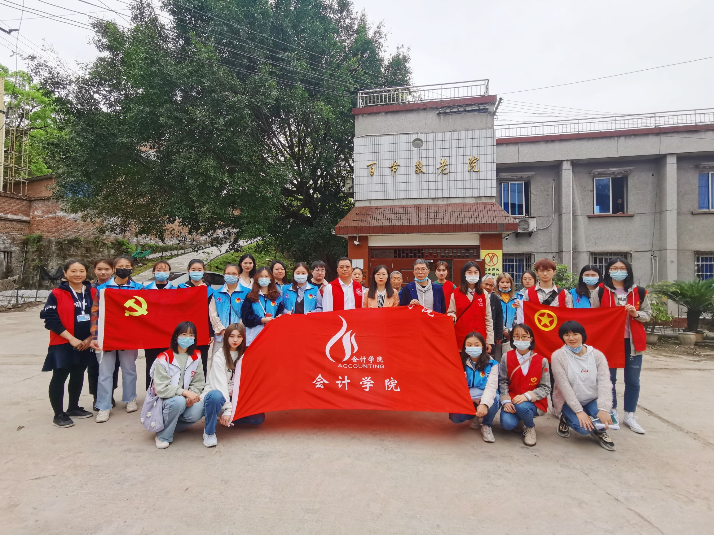 为深入开展党史学习教育,贯彻习近平总书记关于志愿服务的重要指示精神,弘扬奉献、友爱、互助、进步的志愿精神,2021年3月19日,靠谱的电子游戏官网会计学院党总支姚转花书记带队,4位老师和20余名学生志愿者前往百节小学和百节敬老院开展“五个一”院校、社区合作志愿服务活动,与老人们和小朋友们一起度过了一个温暖的下午。