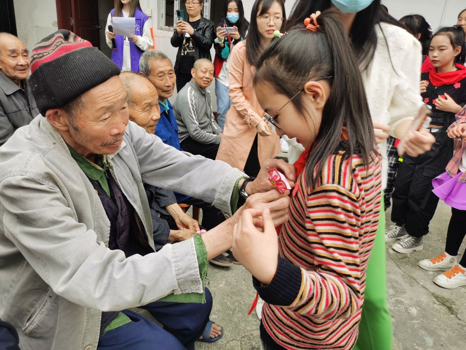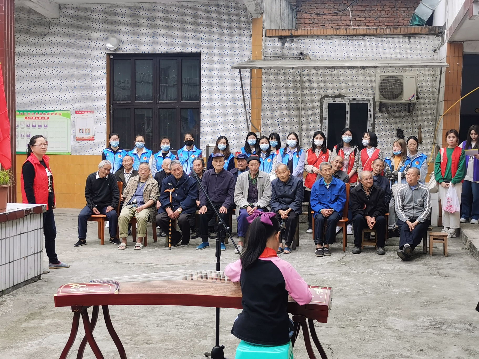 活动践行“五个一”志愿服务:一次关爱,志愿者和小朋友们一起给老人们捶背、捏脚;一次演出,小朋友们集体合唱《学习雷锋好榜样》致敬雷锋,志愿者带来的舞蹈、诗歌、古筝弹奏和吉他弹唱等让老人们沉浸在欢乐的氛围中;一次游戏,击鼓传花,让老人们与同学们共同娱乐,重温童年记忆;一次拍照,一同留下这次活动难忘珍贵的回忆;一次传递,志愿者们精心制作的小红花棒棒糖由老人送给现场的小朋友,将雷锋精神和尊老爱幼的民族传统进行传递。