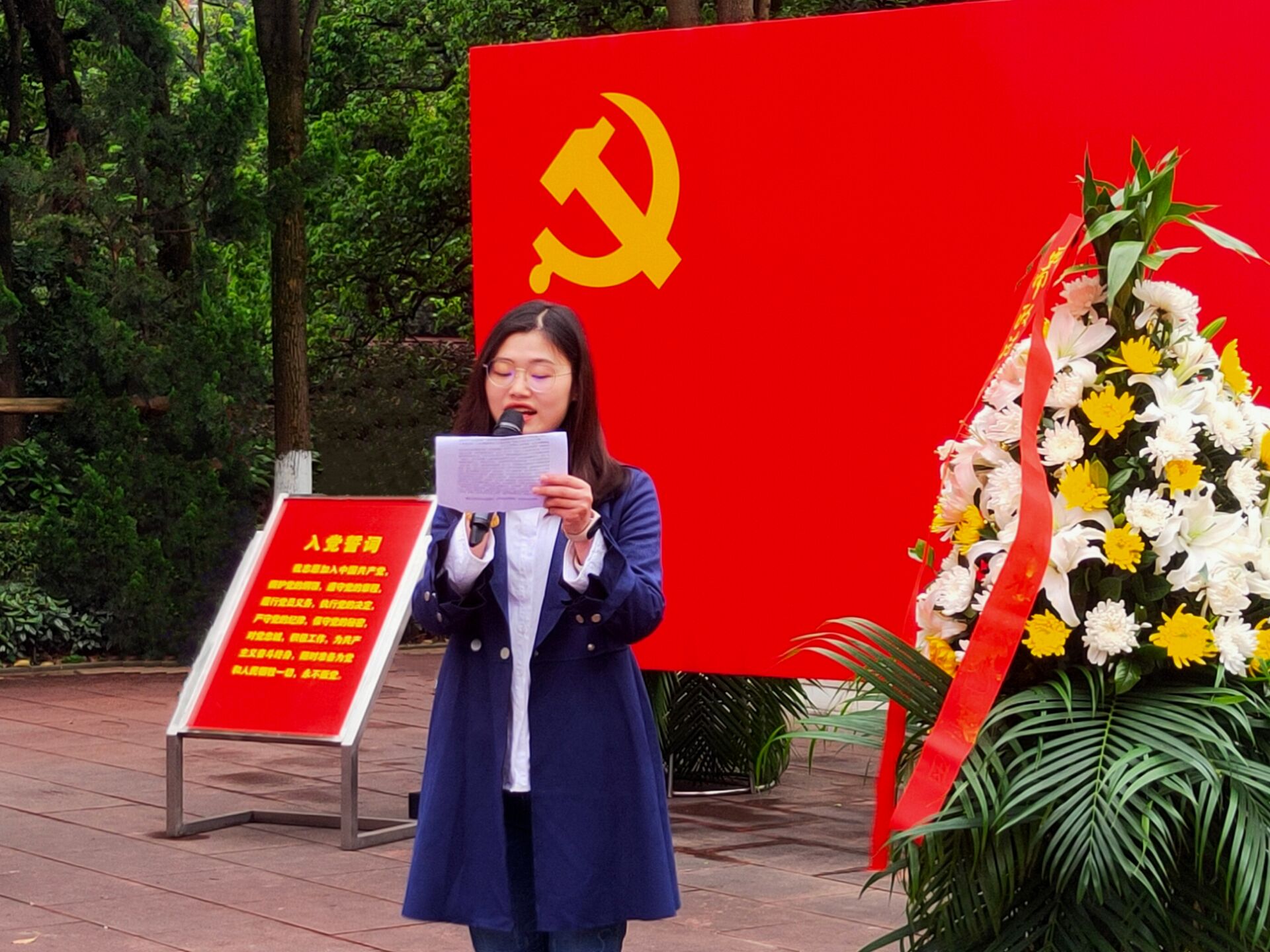 活动过程庄严肃穆,井然有序。活动伊始,支部全体同志向革命烈士肃立默哀,并敬献白花。面对革命先烈,学生党员和入党积极分子代表相继向烈士献词,表达了对烈士沉痛的哀悼和深切的思念。随后由学生党支部组织委员冯海涛老师领誓,带领大家在纪念碑下重温入党誓词,并庄严承诺努力学习,继承发扬革命先烈的优良传统,为祖国的建设和发展奉献自己的青春和热血。