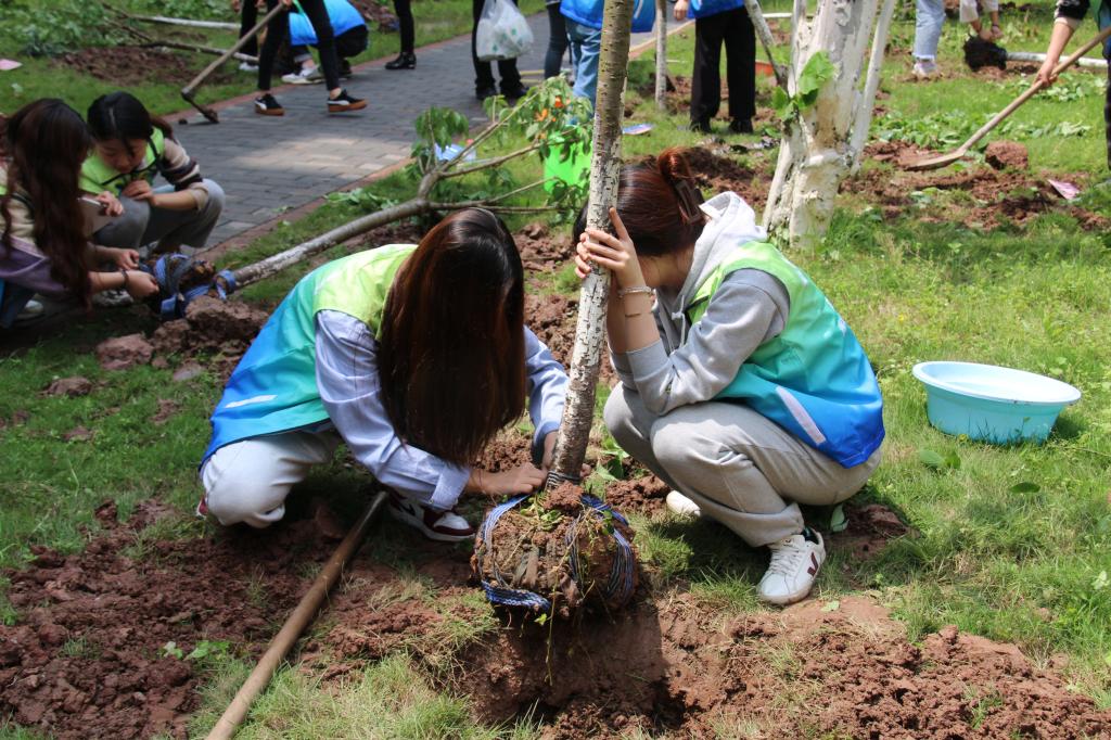 活动现场,嘉宾、领导及在场人员纷纷认领并栽种“第一批希望之树”。陈书记率先垂范、身体力行带头拎起水桶给树苗浇水,播撒下肥料粒子。拿着铁锹、挥起锄头、埋头种树,以身作则带领全校师生燃起植树护树的热情,为一颗颗小树苗 “安家落户”,也将点点绿意植入心间。20级植树志愿者周珊表示:“种子需要土壤才能生根发芽,我们在校时,学校培育了我们,我们离校后,更能帮助母校成就一片沃土。”