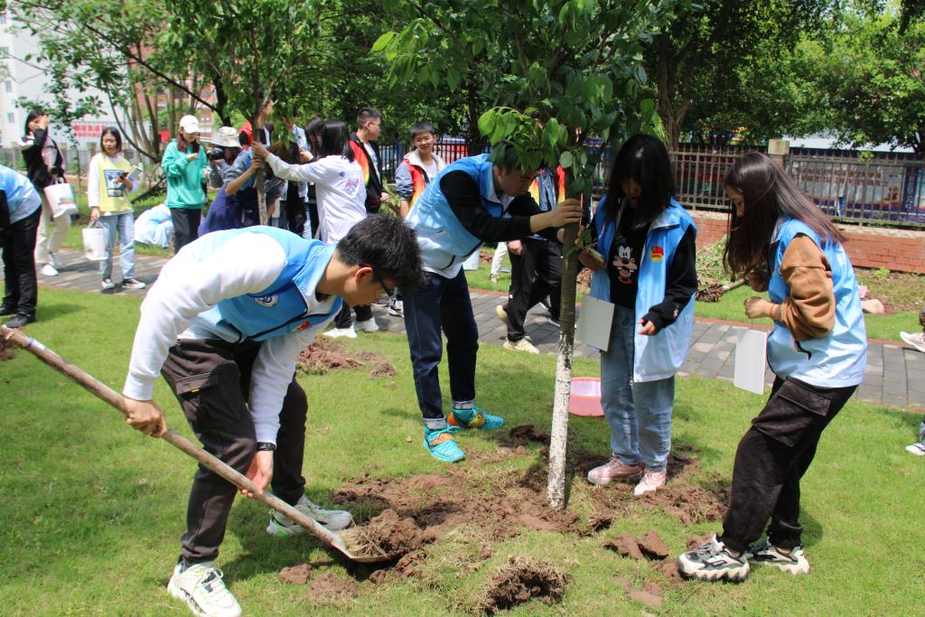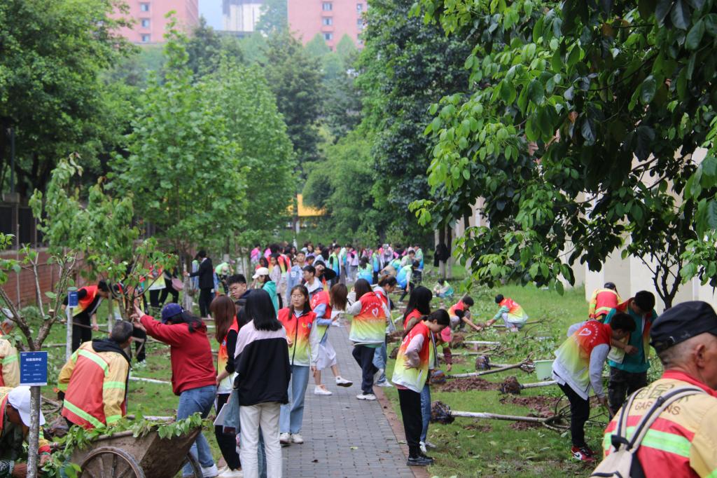 一树新栽益四邻,春风拂绿,万象更新。4月8日下午,我校与新欧鹏南方商管集团在学生公寓区共同开展了“植树添绿时 耕耘成长路”劳动教育活动。新鸥鹏南方商管集团常务副总裁郭文和及刘拯华、王俊波、宋冬等负责人,我校党委副书记陈龙国、副校长沈民,学生工作部、教务处、党委宣传部、后勤保障处、保卫处等部门负责人以及百余名学生志愿者参与了此次活动。