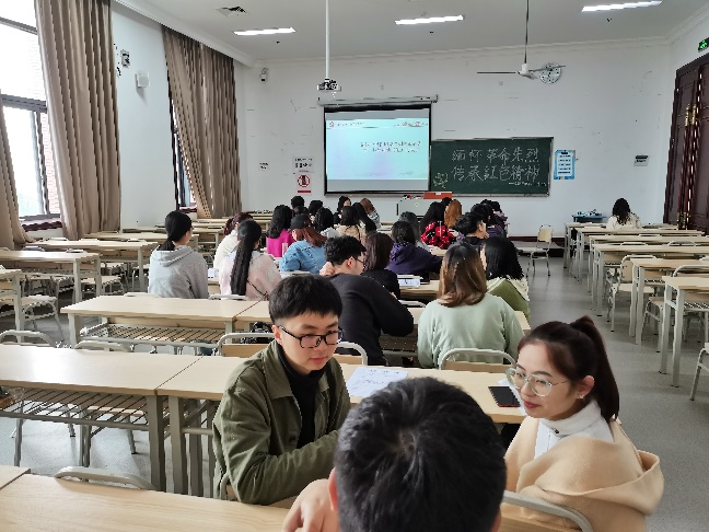 同学们一起观看了革命先烈浴血奋战的红色影片——《血战湘江》。该影片以长征史上最惨烈的湘江之战为背景,生动表现了红军34师官兵前仆后继,勇于牺牲,全力掩护中央红军渡过湘江,生动形象地还原了抗战时期至新中国建国以来那段可歌可泣的峥嵘岁月,回顾了中国共产党从创建到一步一脚印奋斗出来的光荣历程,歌颂了老一辈革命家的丰功伟绩,使在场的同学们感受到了革命先辈们对共产事业的崇高信仰和不懈追求。同学们观看后感动不已,杨悦同学表示:“新中国来之不易,我为祖国取得的举世瞩目的伟大成就而感到骄傲和自豪。”王乐同学表示:“革命先辈们将生命置之度外,无私奉献,无惧牺牲,是我们讴歌赞美的对象,是我们学习的榜样。”通过观看影片,同学们深感现今的太平盛世弥足珍贵,泱泱中华的繁荣昌盛正是老一辈的革命先烈用血肉之躯换来的,同时也深刻地体会到传承红色精神的责任感与使命感。随后,同学们积极地分享了自己喜爱的红色书籍——《红岩》、《毛泽东:峥嵘岁月》、《保卫延安》等等,这些书籍都记录了中国革命在取得胜利的历史关头之际,光明与黑暗的殊死搏斗。通过此次分享,大家纷纷表示会多阅读红色书籍,忆当年马革裹尸烈士志,创吾辈青年学子中华魂,提高思想觉悟,更好地服务群众,弘扬正气。