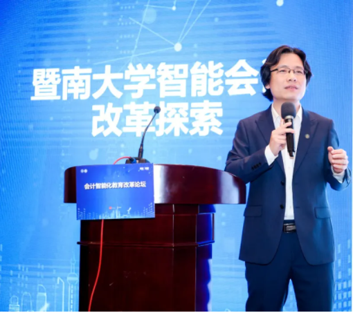 在会议当天下午举行的四场圆桌论坛中,专家学者围绕“数智时代会计本科人才培养引领与变革”、 “数智赋能下会计研究生教育融合聚变”、 “数智驱动下中国会计学研究使命与路径” 、“数智时代校企合作会计数智化人才培养实践”四个主题进行了分享与交流。其中,暨南大学黎文靖教授以《暨南大学智能会计改革探索》为题介绍了该校数智时代本科人才培养改革举措及取得成效。