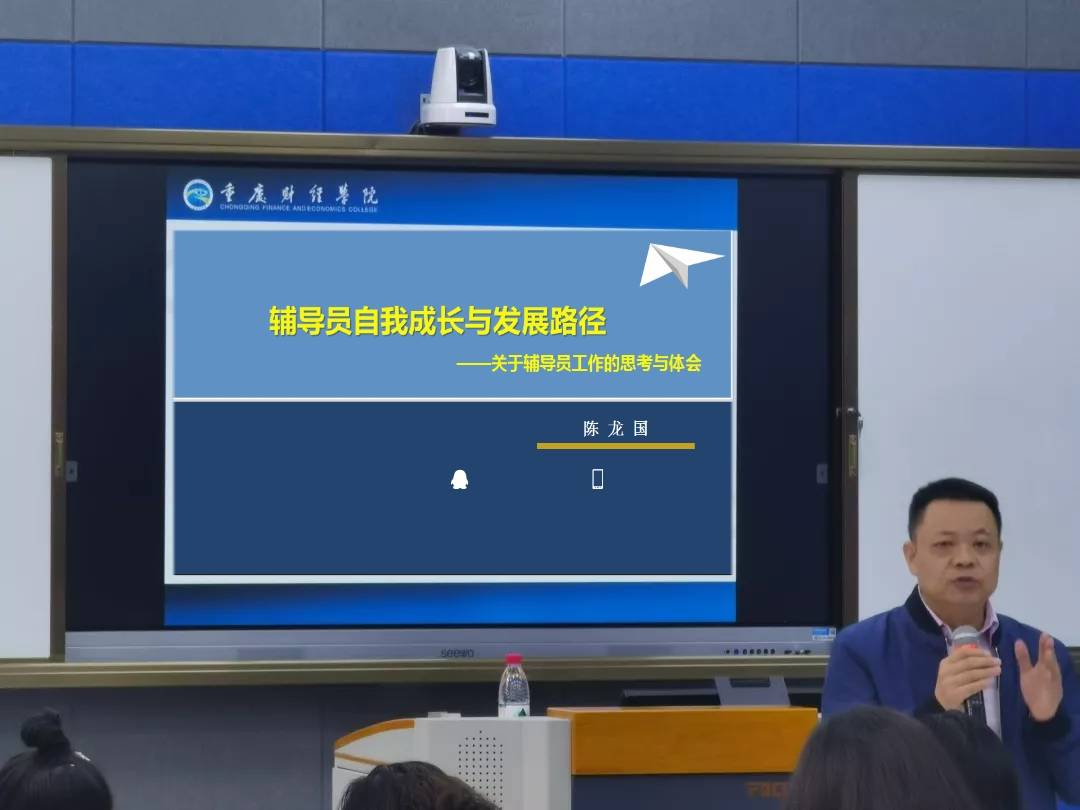 随后,校党委陈龙国副书记作为“学工讲坛”第一讲主讲人,为大家讲解《辅导员自我成长与发展路径》,陈书记从“辅导员之问”、“辅导员的角色定位与职业认知”、“辅导员职业发展四部曲”三方面展开阐述,强调辅导员在学生成长与发展路上起着重要的引导作用。陈书记指出,“辅导员”的角色理解主要是“辅”学生成长、“导”学生成才以及“员”学生梦想,通过辅导员爱、学、创、思职业发展四部曲,对学生进行信念支撑、榜样引领,以自身的实际行动,在辅导员工作中实现自我能力提升和影响教育学生的双赢结局。引领学生思想,导航人生,以青春激情、为青春摆渡!