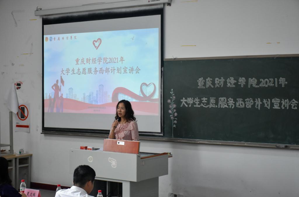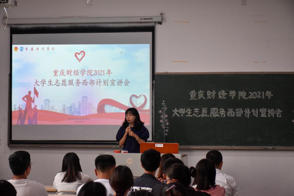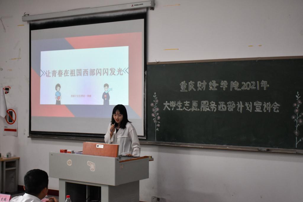 为促进我校志愿服务工作的开展,引导更多大学生参与志愿服务西部计划,5月11日下午,2021年大学生志愿服务西部计划宣讲会在1411教室召开。巴南区青少年活动中心副主任王双,校团委书记夏文瑞,西部计划志愿者黄静、但路出席了宣讲会,本次活动由团委干事王丹怡主持。