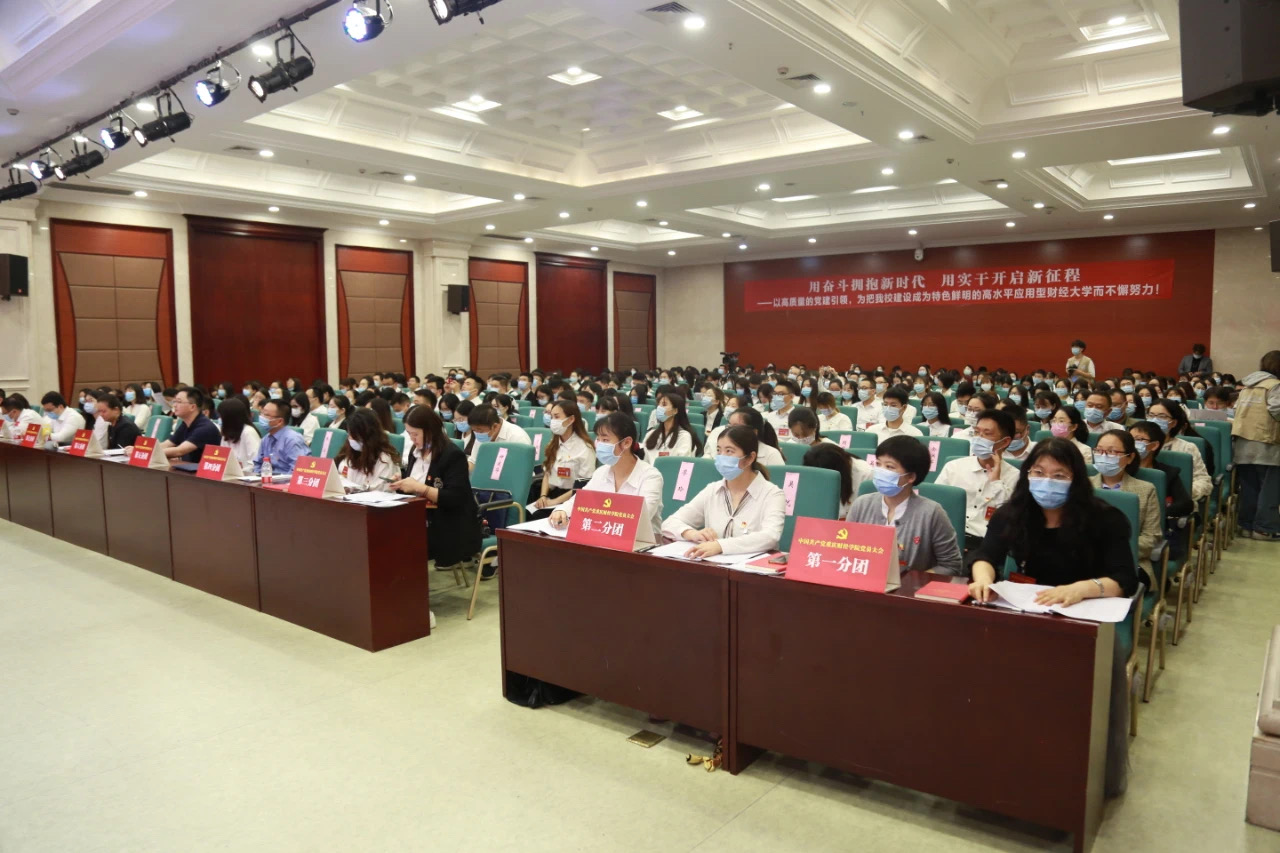 合影结束后,全体党员听取了党委书记张毅作的题为《立足新时代 聚力新发展 全面开启建设高水平应用型财经大学新征程》党委工作报告。